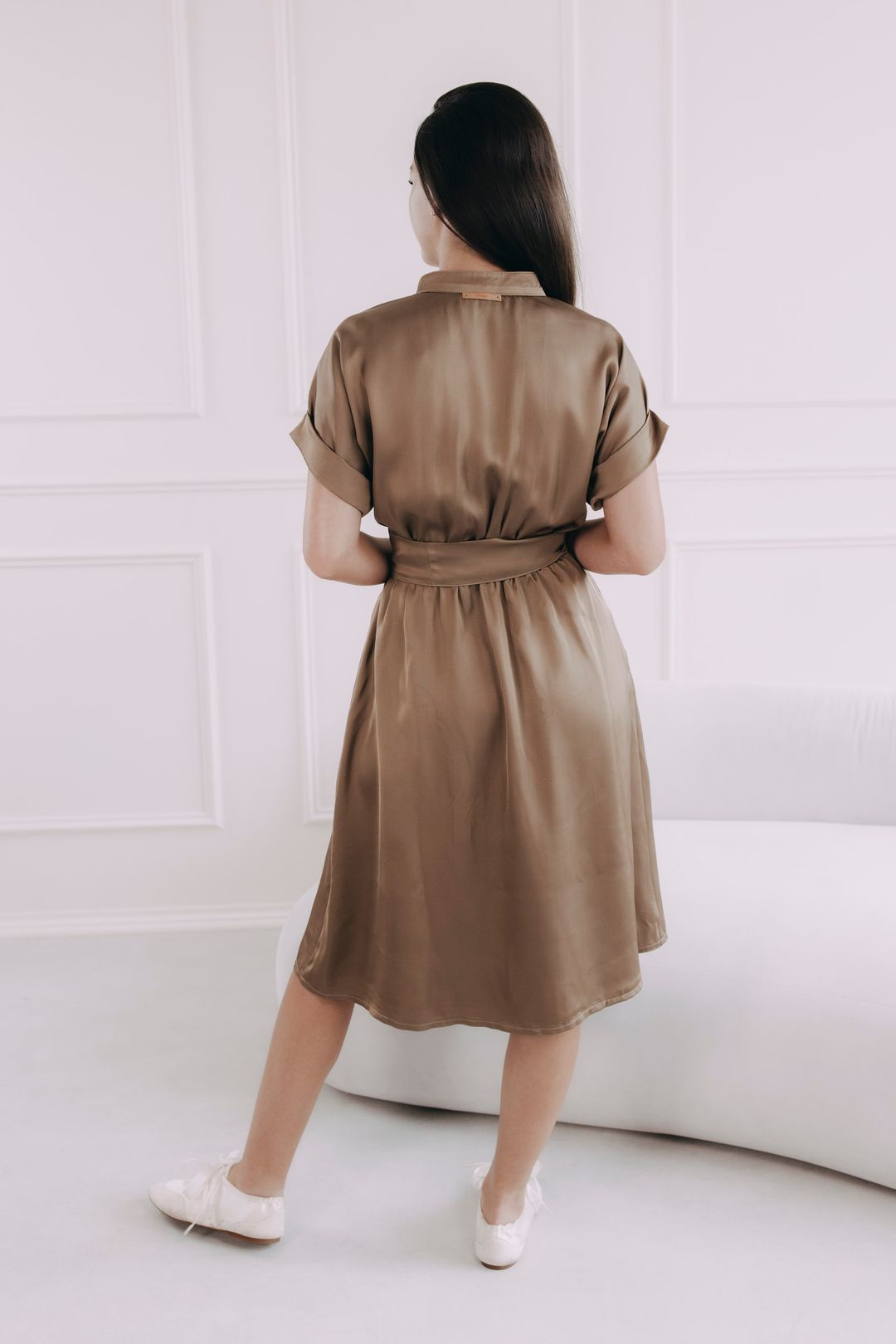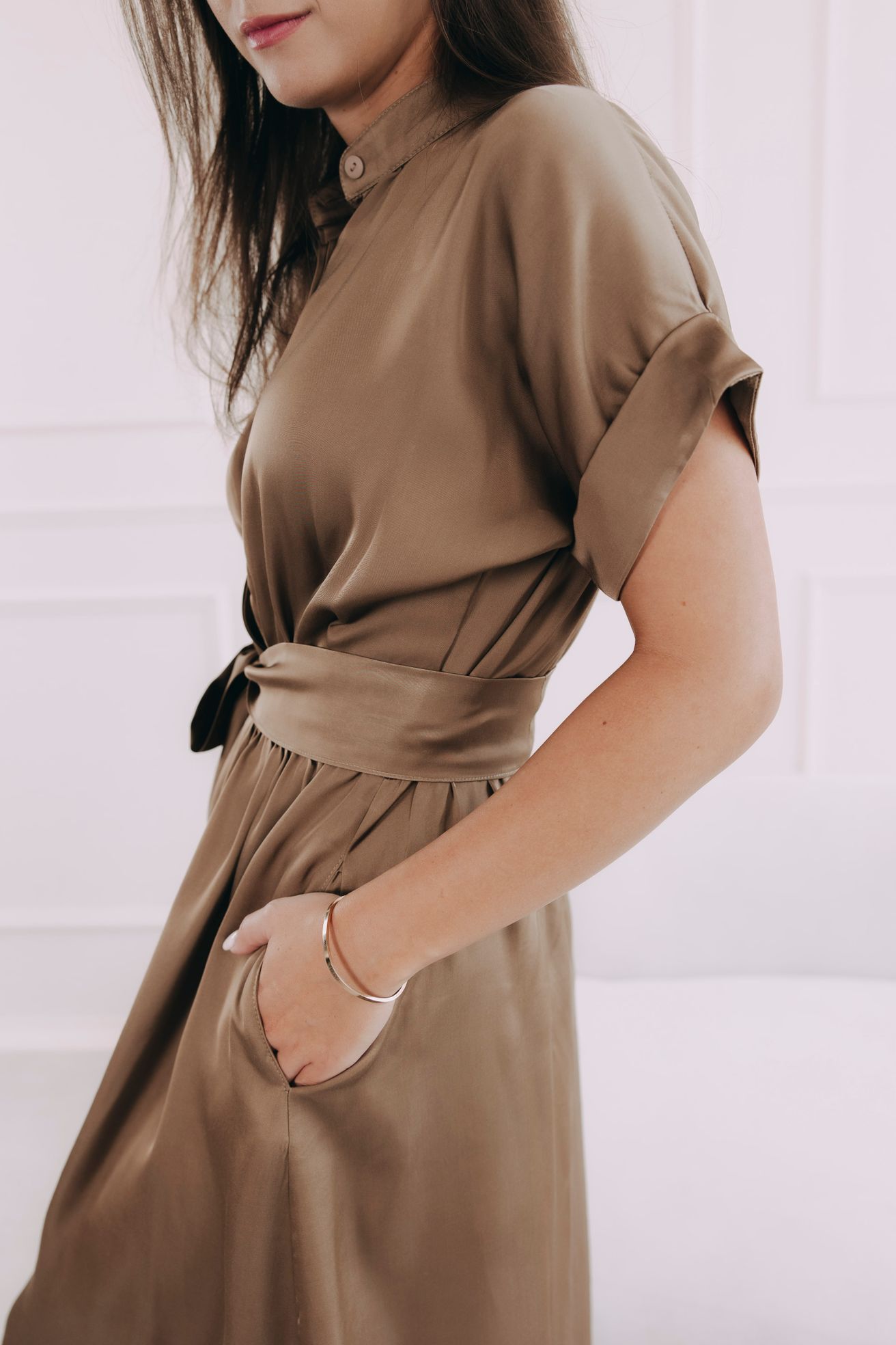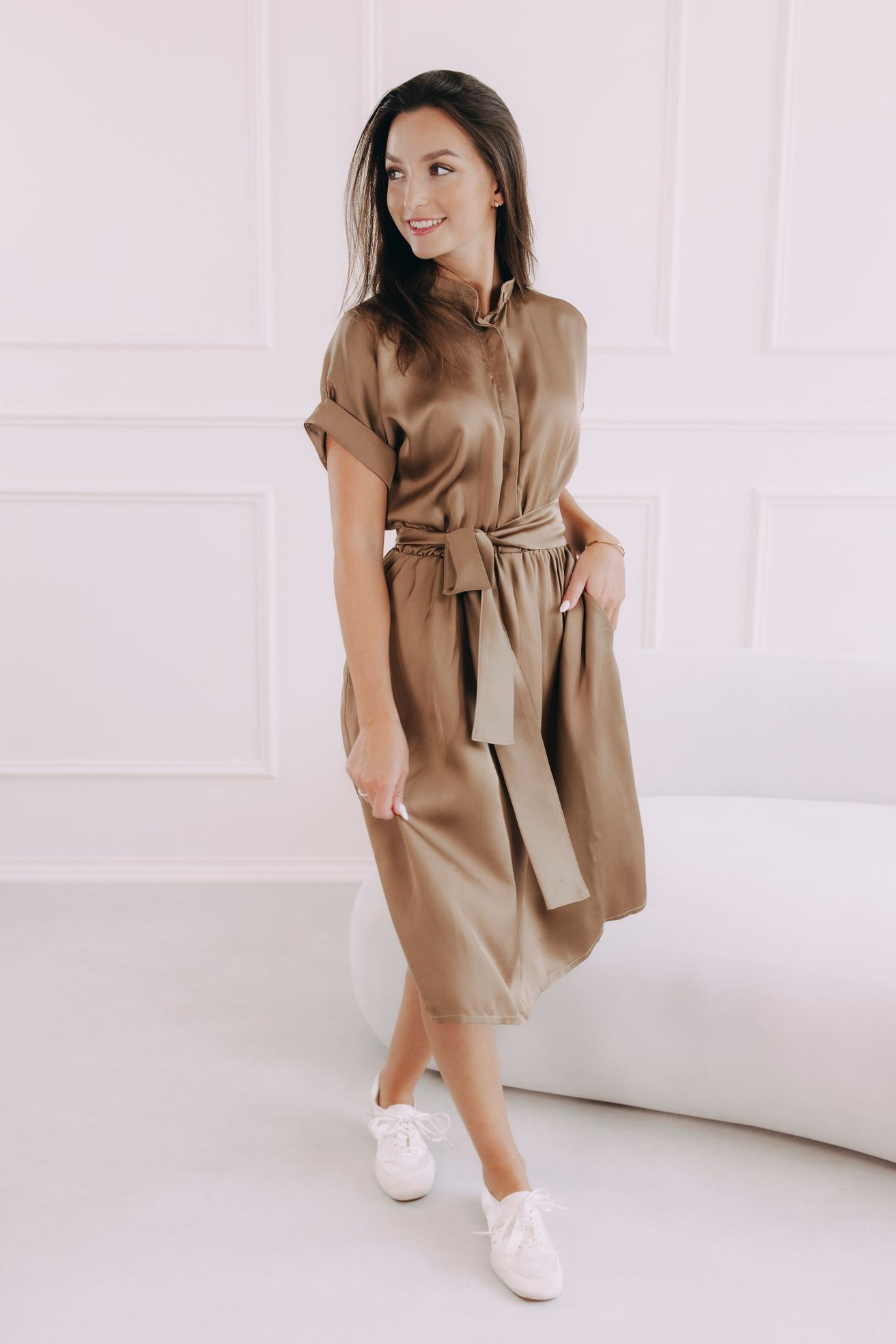 - Nenucený šmrnc a styl: Ohrnuté rukávky tvoří drobný, leč nepřehlédnutelný detail, který dodává šatům sofistikovaný vzhled.