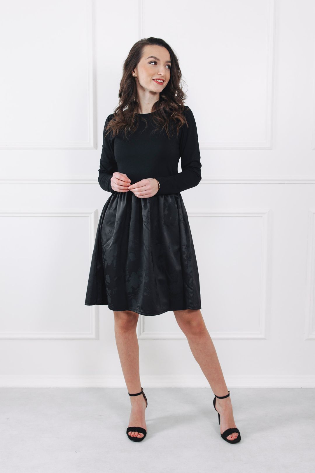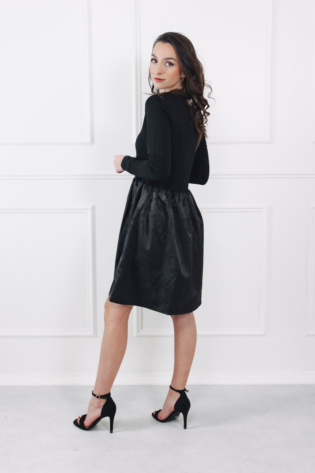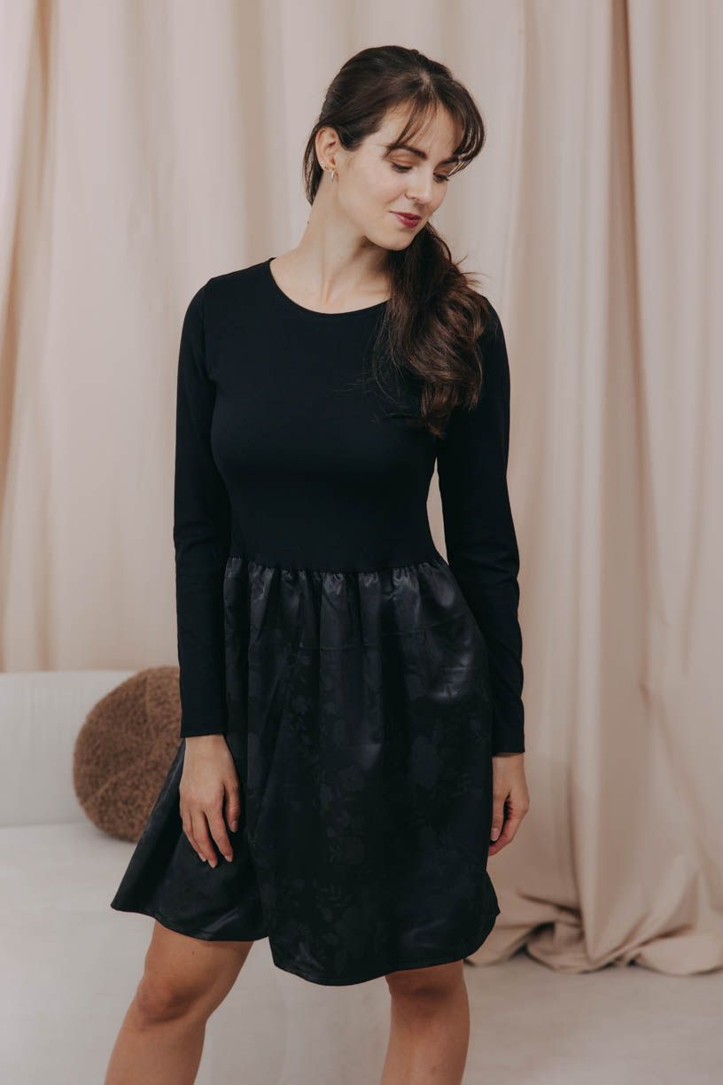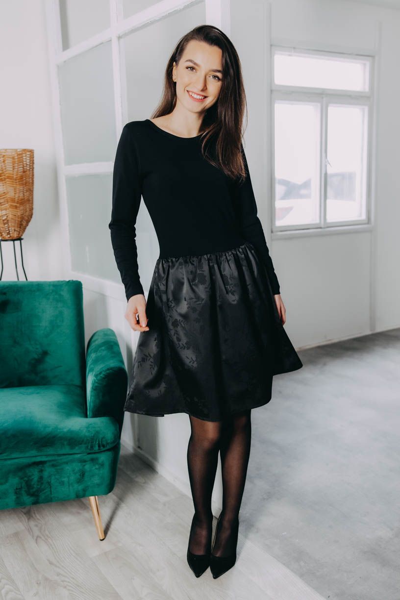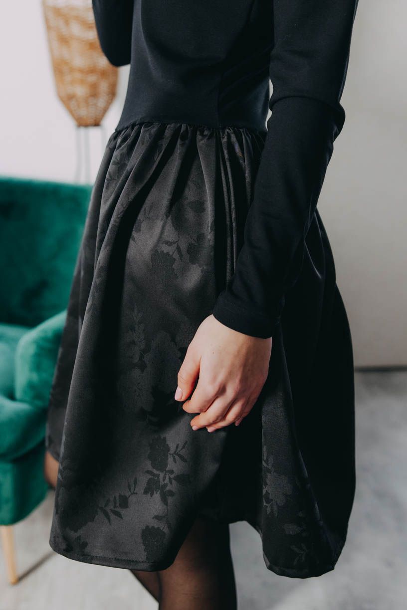 Šaty Yusa Black Flowers nejlépe vyniknou v jednoduchých kombinacích. Pro elegantní look je doplňte černými lodičkami, pro zimní dny zase vysokými kozačkami. Jelikož šaty mají jemný květinový vzor tón v tónu, skvěle se k nim hodí výraznější šperky — zlaté, stříbrné i černé. Outfit doladí malé psaníčko nebo minimalistická kabelka, a jste připravená na večírek, rande i sváteční posezení.