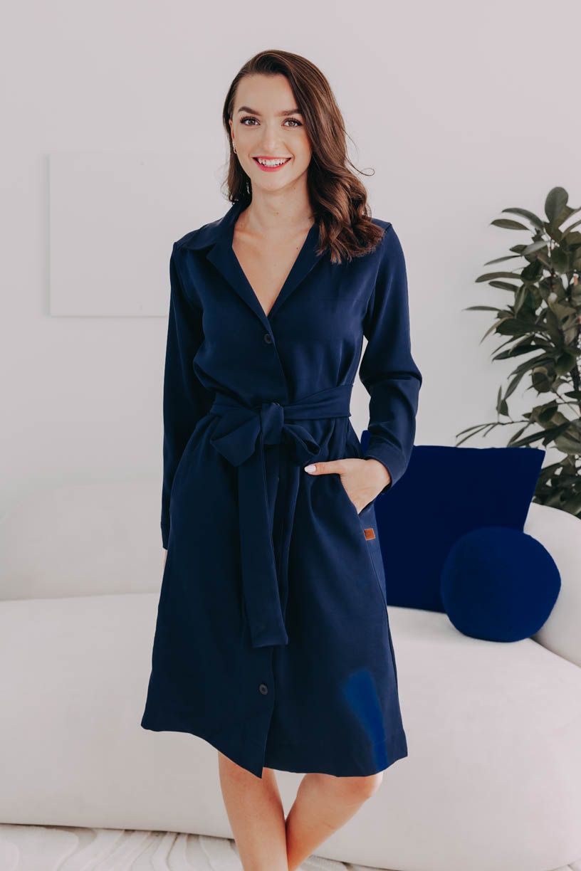 Musíte uznat, že naše šaty Thaba jsou opravdu povedený kousek do šatníku. Polyester jsme spojili s pohodlným košilovým střihem, který s oblibou nosily i módní ikony Audrey Hepburn a Grace Kelly. Vsadíme se, že padnou do oka i vám. Na elegantní výstřih do V plynule navazuje řada knoflíků, které se táhnou po celé přední části. Rukávy jsou vyhrnuty do úzké manžety, kterou si můžete stáhnout na předloktí. Střih po kolena lichotí jakékoli postavě a s volně přiloženým páskem v barvě šatů si pěkně vytvarujete pas.