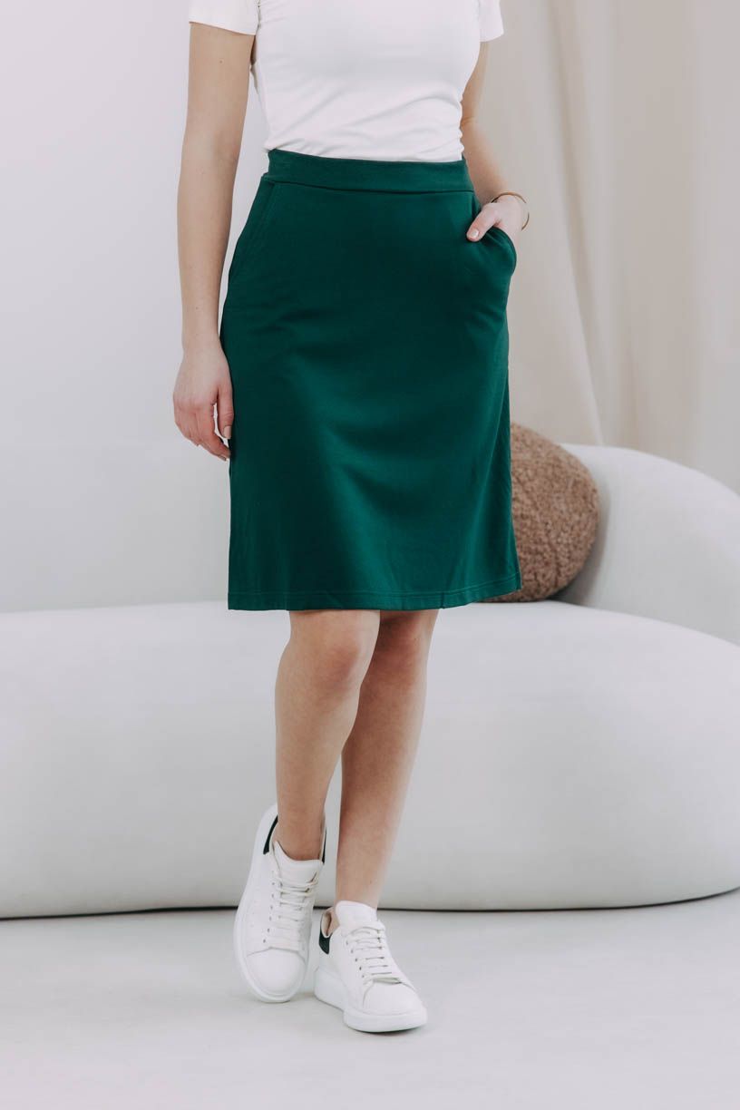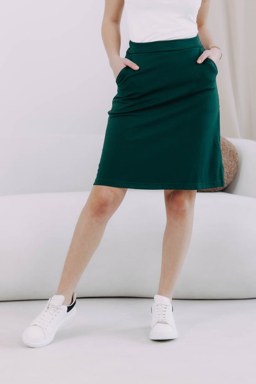 Sukně může být kouskem, který se postará o dokonalé pohodlí. Stačí zvolit vhodný střih a materiál. Bugačky už vědí, že to naše Péťa ovládá na výbornou, a tak vznikla tmavě zelená Anaya Smaragd.