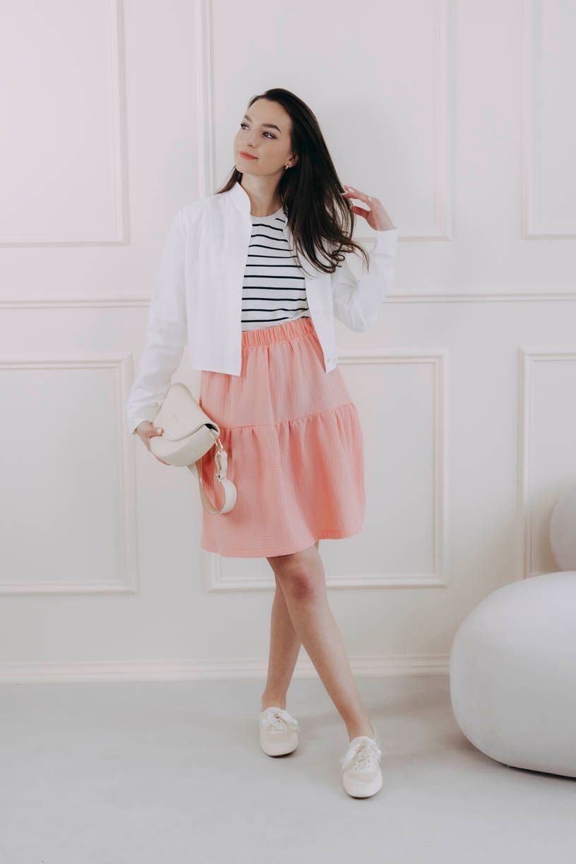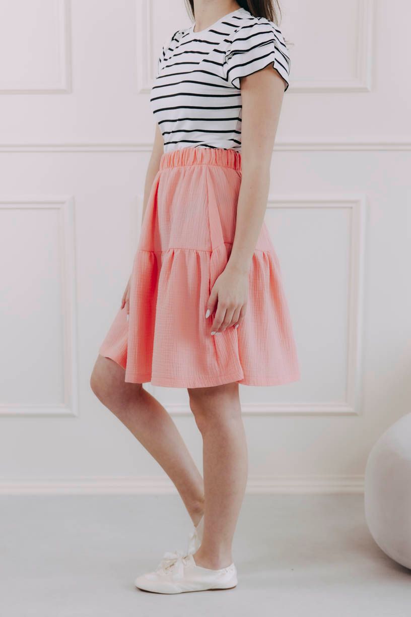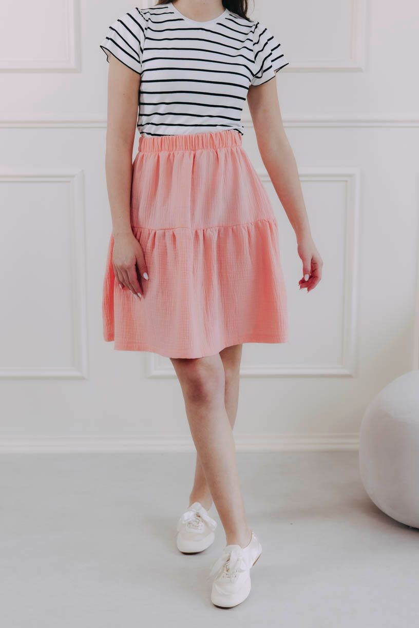 Stylová sukně z příjemného bavlněného mušelínu, kterou si zamilujete pro její pohodlí i lehkost během horkých letních dnů.