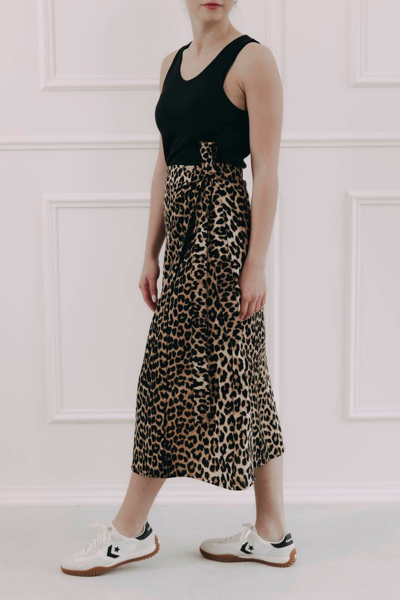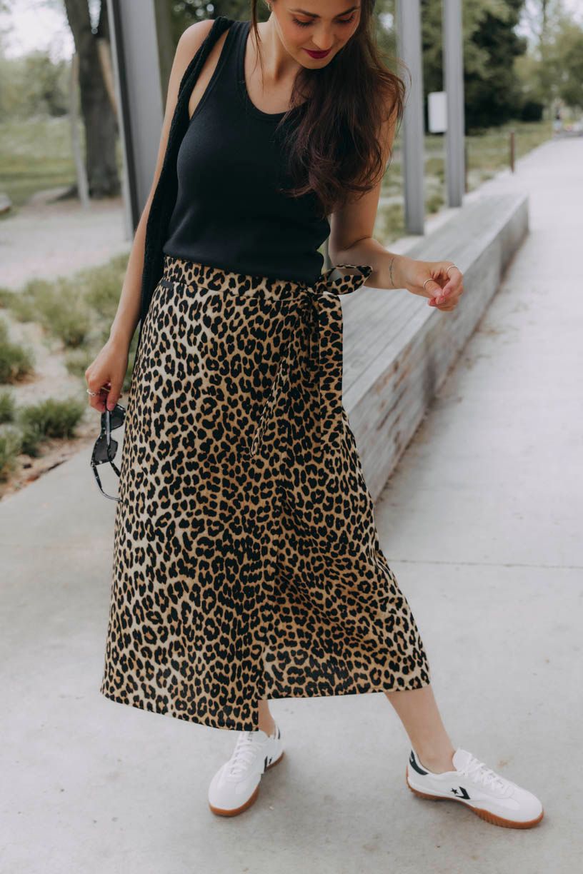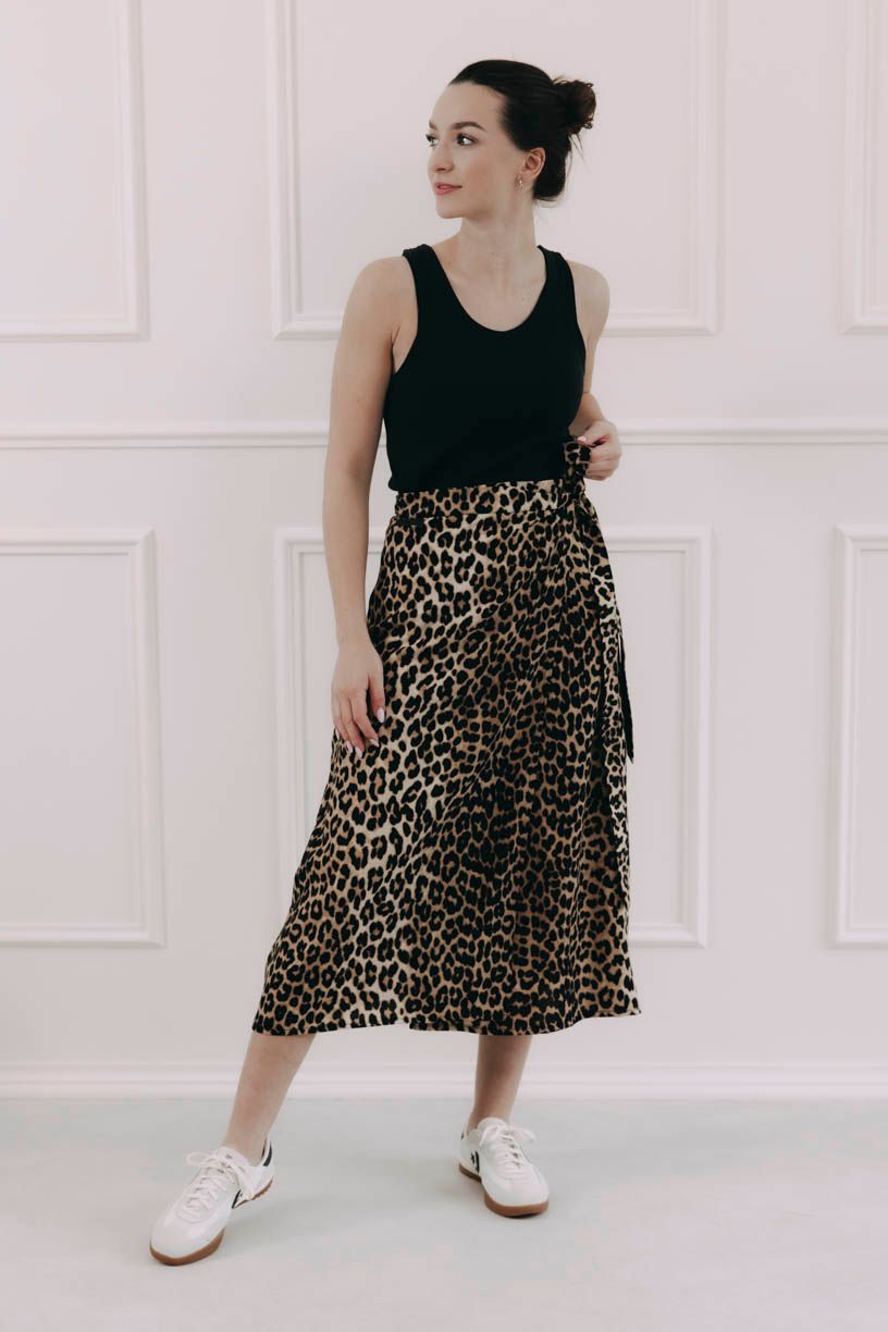 Látka ze 100% lyocellu je jemná, prodyšná a krásně splývá. Leopardí vzor jí dodává charakter, ale zároveň zůstává dostatečně univerzální, takže sukni snadno zkombinujete s jednoduchými tričky, topy nebo košilemi. Pokud máte rády detaily, jemnost v pohybu a kousky, které vás nechají být sama sebou, bude vám sedět náramně.