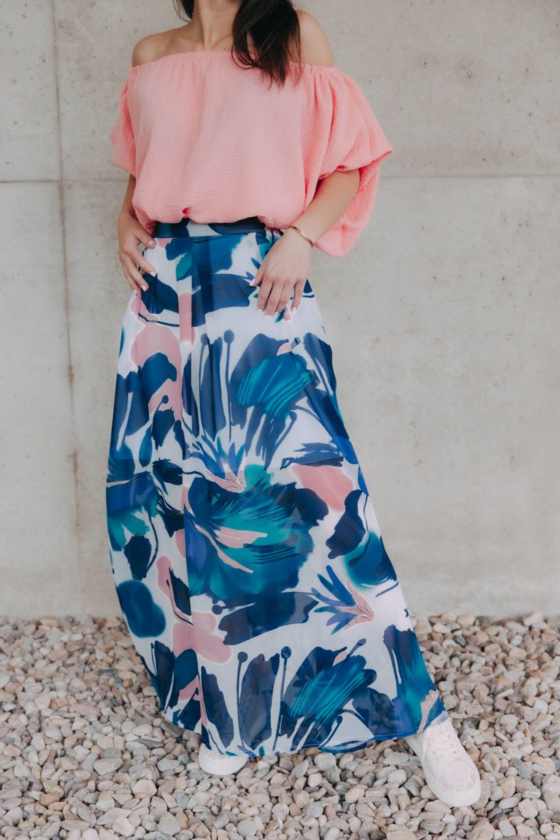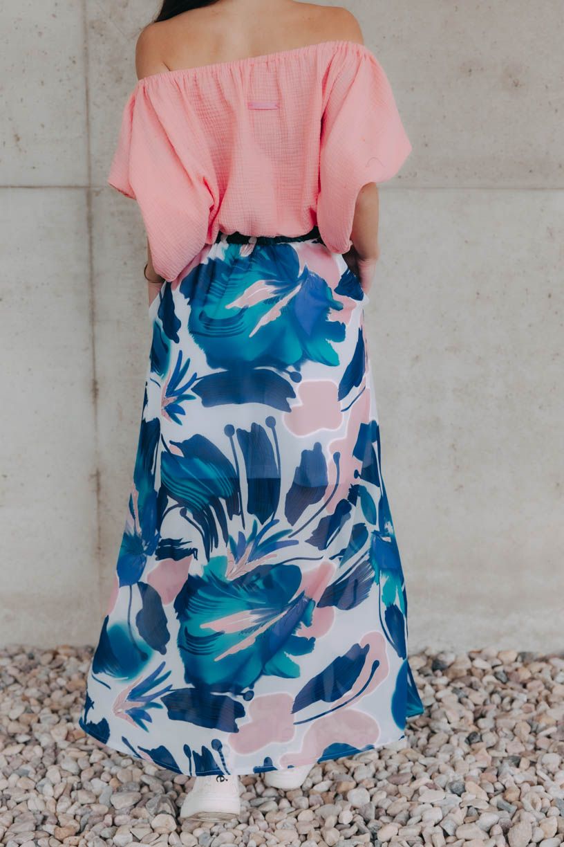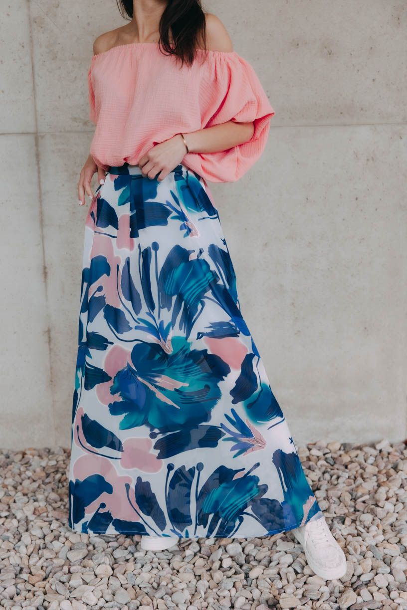 Krásná u moře, okouzlující na zahradní párty, pohodlná ve městě – naše maxi sukně je kousek, který vás bude zdobit při mnoha příležitostech. Do Esinam jsme spojili všechny ingredience, které by podle nás měla mít ideální maxi sukně: na dotek příjemně měkký a jemný materiál, který se pohodlně nosí a volný rozevlátý střih do "A". V zadní části pasu je vsazena guma, v přední části je sukně jemně nařasená a pás hladký.