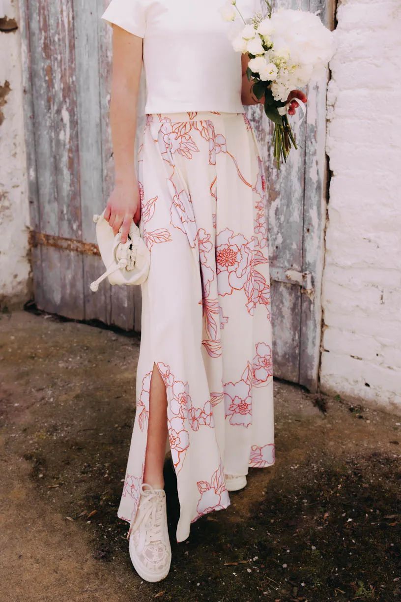 Krásná u moře, okouzlující na zahradní párty, pohodlná ve městě – naše maxi sukně je kousek, který vás bude zdobit při mnoha příležitostech. Do Esinam jsme spojili všechny ingredience, které by podle nás měla mít ideální maxi sukně: na dotek příjemně měkký a jemný materiál, který se pohodlně nosí a volný rozevlátý střih do "A". V zadní části pasu je vsazena guma, v přední části je sukně jemně nařasená a pás hladký.