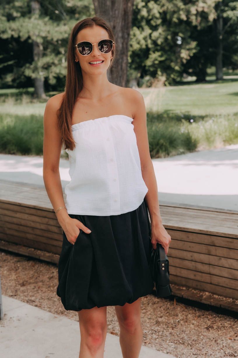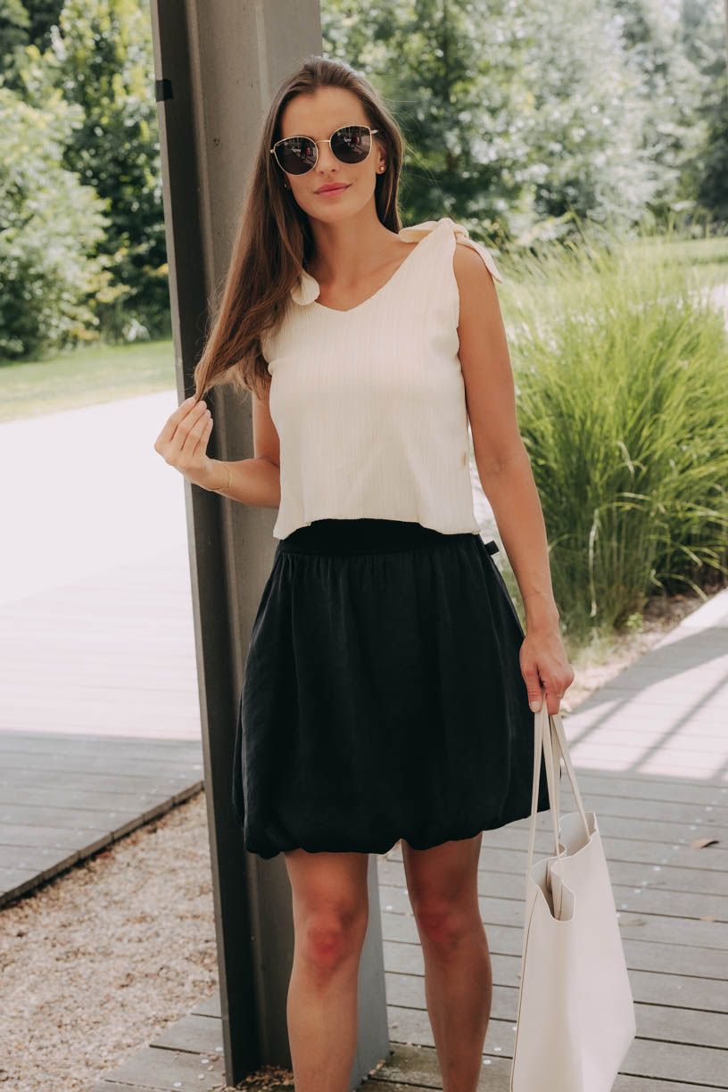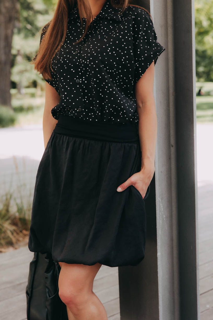 Balonová sukně Kagiso je důkazem, že se módní trendy opakují a opakují. Vysoký pas ohrnete dle libosti a kombinací s ní vytvoříte spousty.