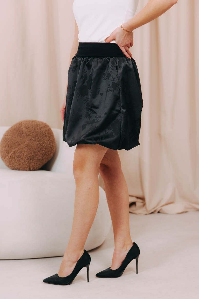 Vysoký pružný pas si klidně ohrňte dle potřeby – a ať už bude jakákoliv, jisté je, že maskovací schopnosti této vychytávky si zamilujete. Lesklý a lehce strukturovaný materiál sukně je vyloženě působivý, to vám ovšem potvrdí nejeden obdivný pohled.