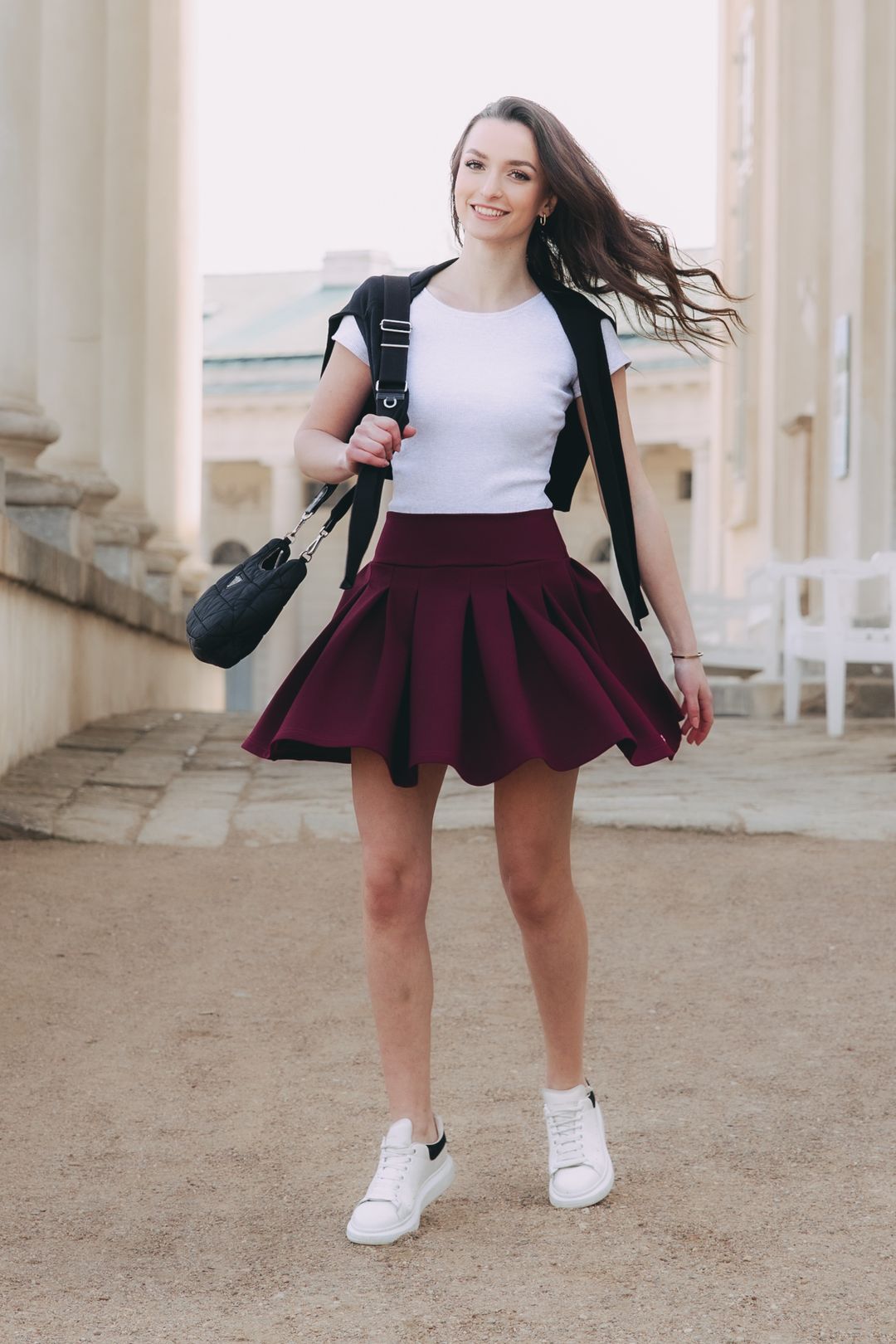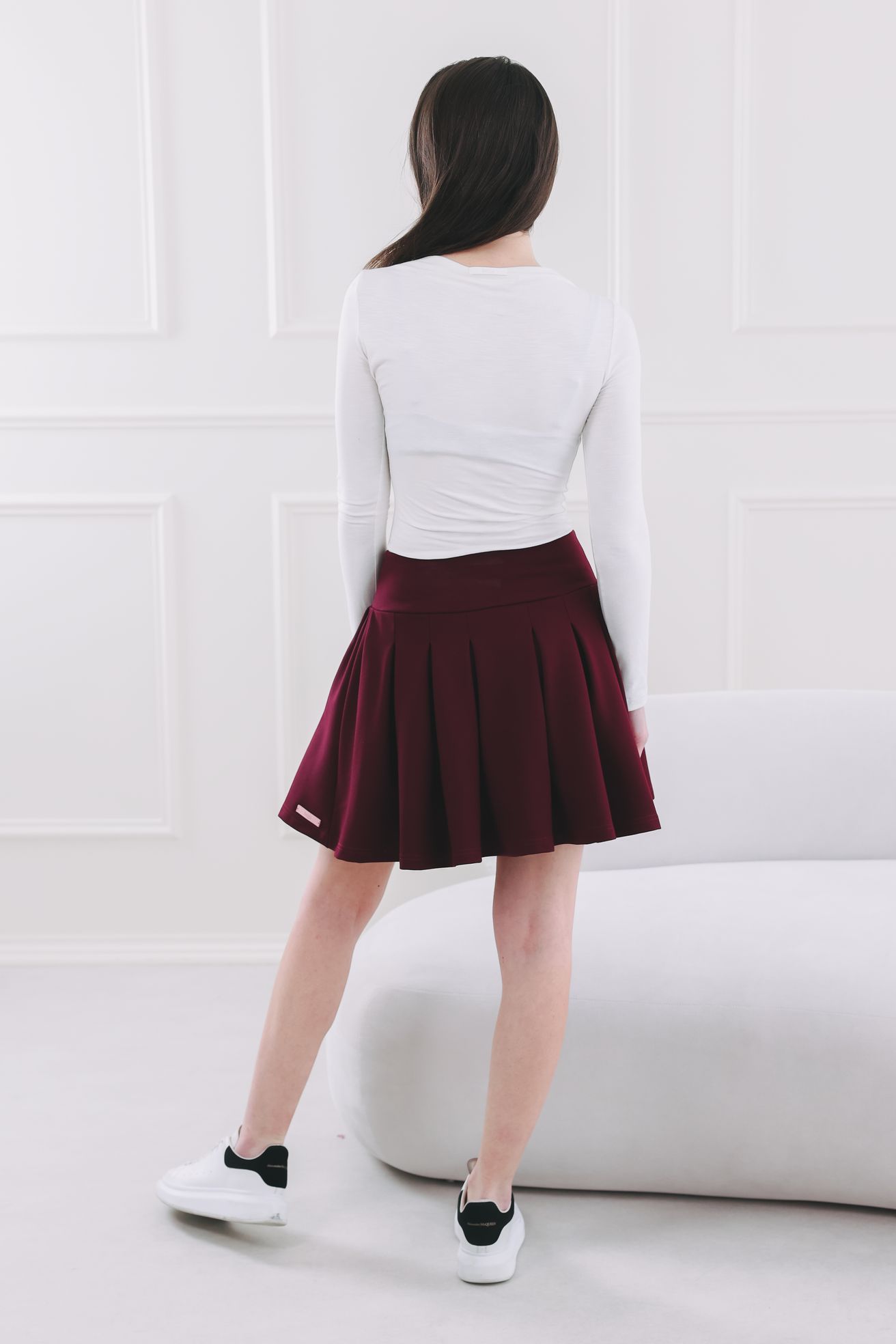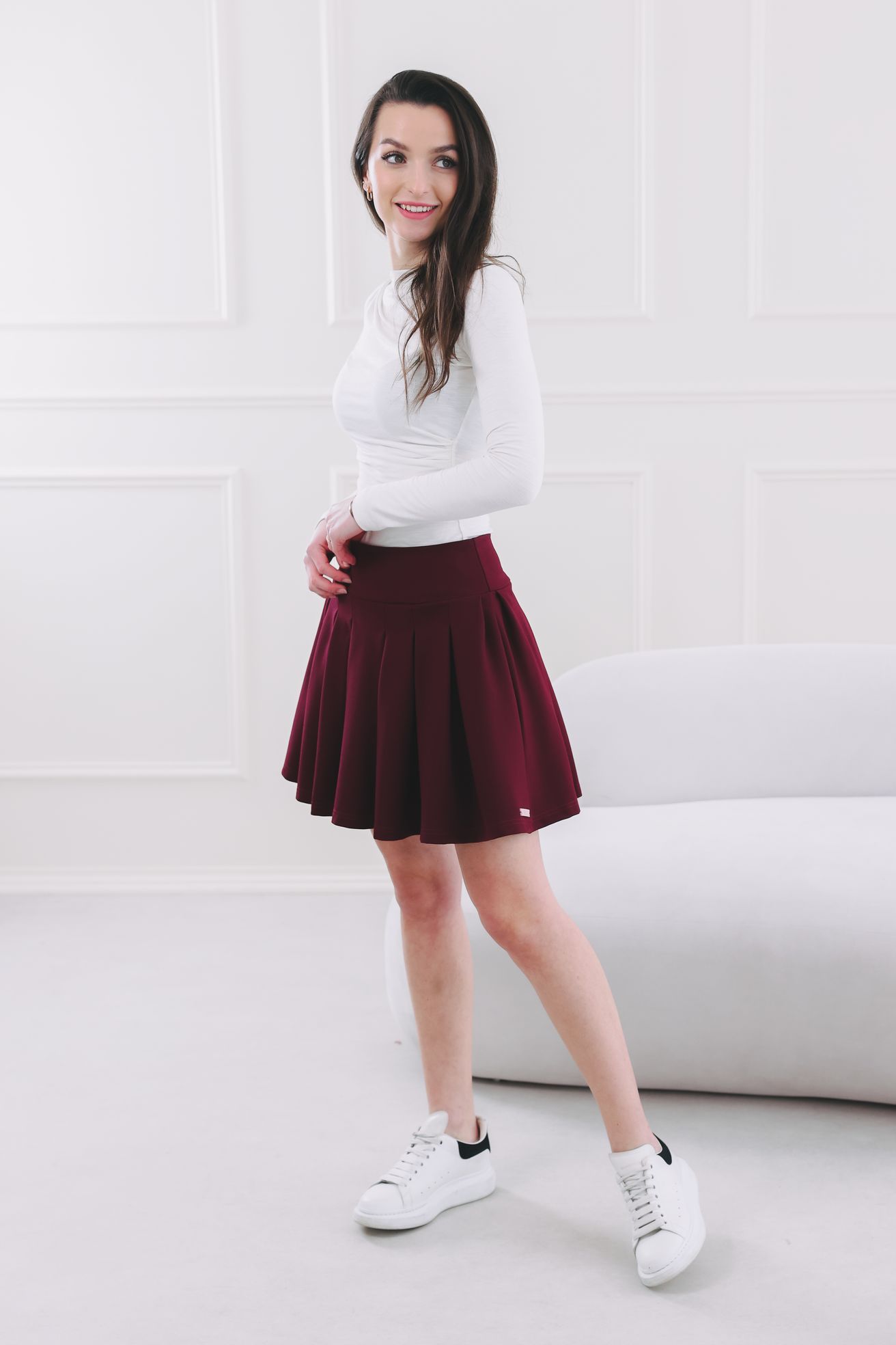 Zapomeňte na mýty, že krátké sukně patří jen k létu. Je čas obléknout vzorované punčochy, parádní vysoké kozačky a ukázat, že i v chladnějších měsících může být váš outfit hravý a šik. Sukně Kalifa Wine je kousek, který vás bude bavit a který se stane pilířem vašeho minimalistického šatníku. Je ušita s láskou a důrazem na kvalitu, aby jste se cítila skvěle po celý den.