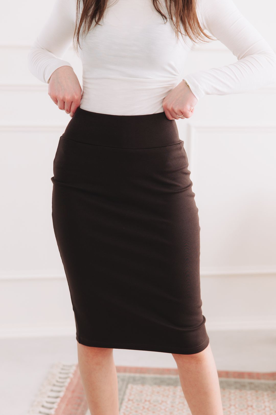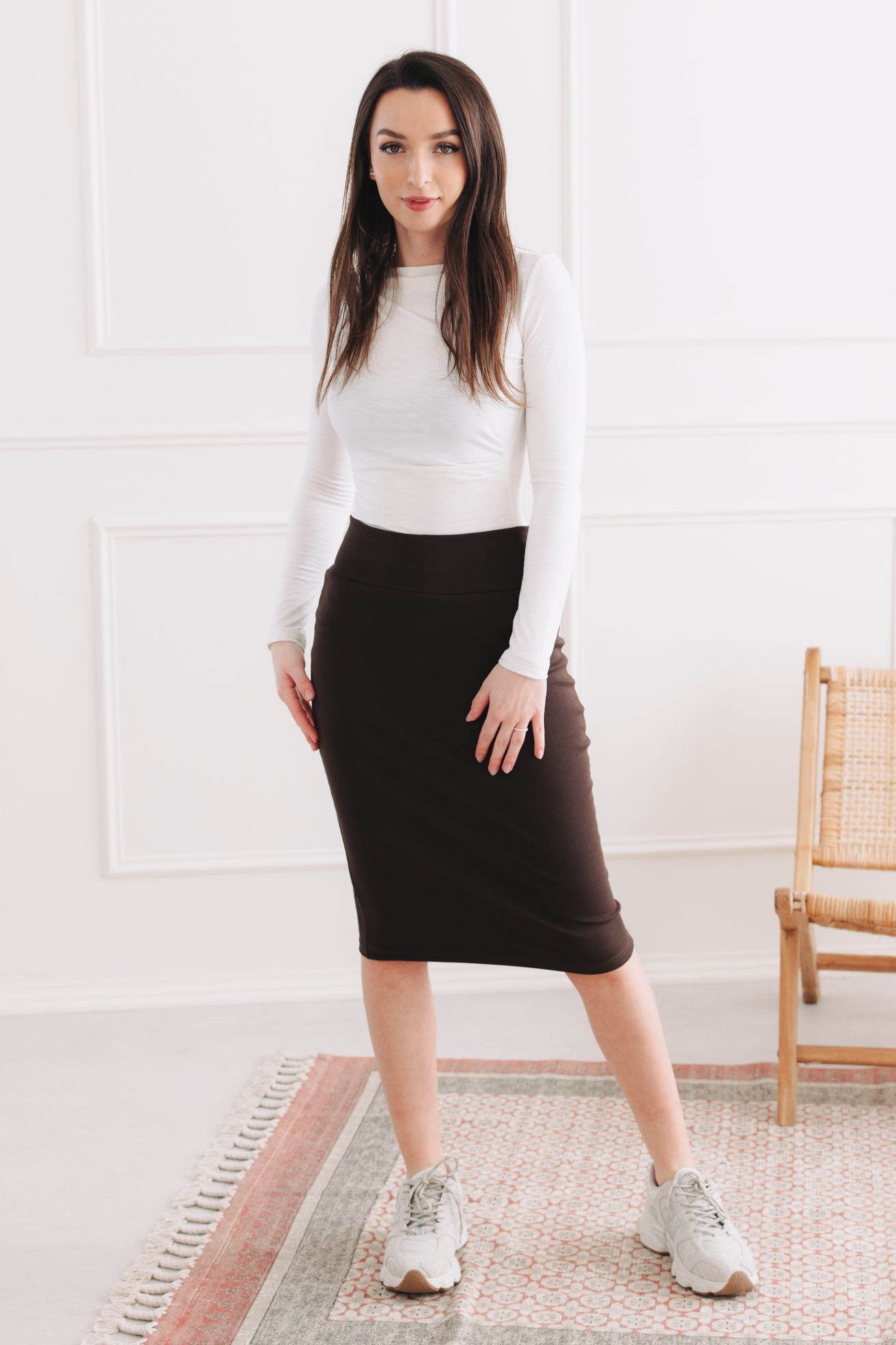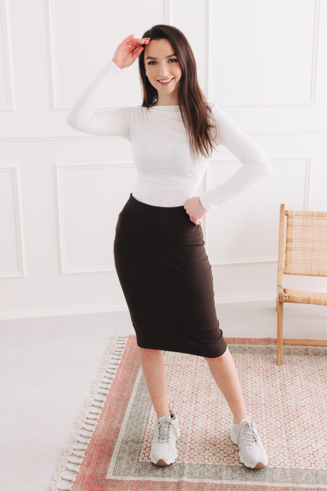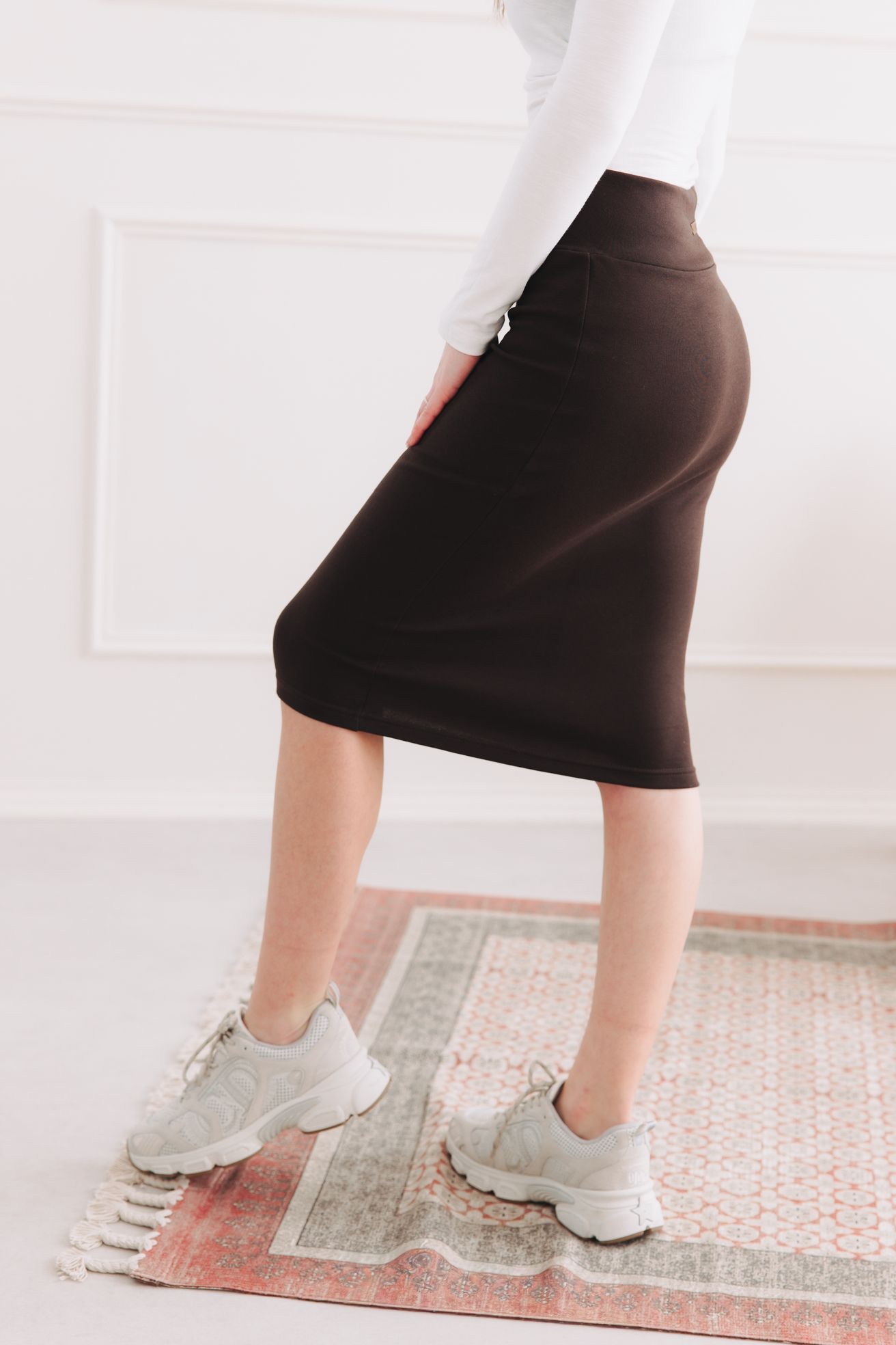 Upjatá sukně, ve které se bojíte si sednout? Tak přesně na takovou zapomeňte. Hnědá sukně Keyla je tu, aby přepsala pravidla. Je to ta pověstná elegantní pouzdrovka, která sice vykouzlí postavu snů, ale díky neuvěřitelně pružnému materiálu vás nechá volně dýchat, kráčet i utíkat na tramvaj. V téhle hnědé krásce budete za hvězdu kanceláře i královnu víkendových procházek. Je to prostě kousek, který se vám přizpůsobí, a ne naopak.