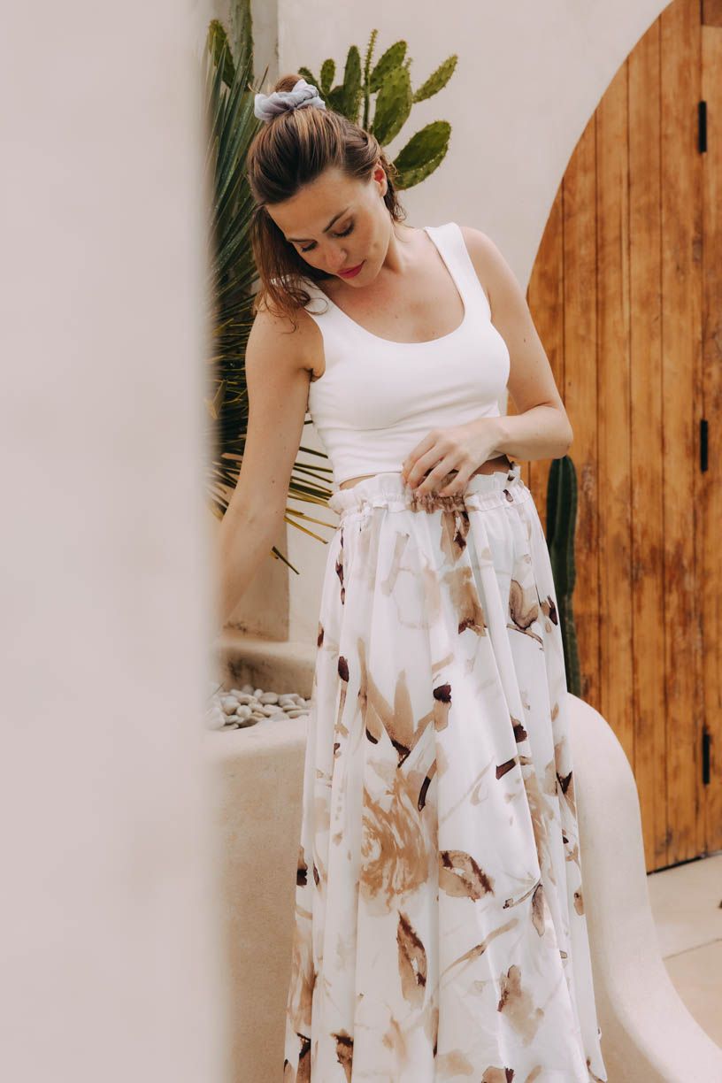 Jestli by něco nemělo chybět v kufru zabaleném do tropů, pak je to jednoznačně lehoučká dlouhá sukně. Skryje pokožku před přímými paprsky (což samozřejmě neznamená, že se nemáte chránit opalovacím krémem). Navíc s tímto vzorem nebudete potřebovat dlouze přemýšlet o doplňcích, abyste podtrhly svůj šarm a eleganci.