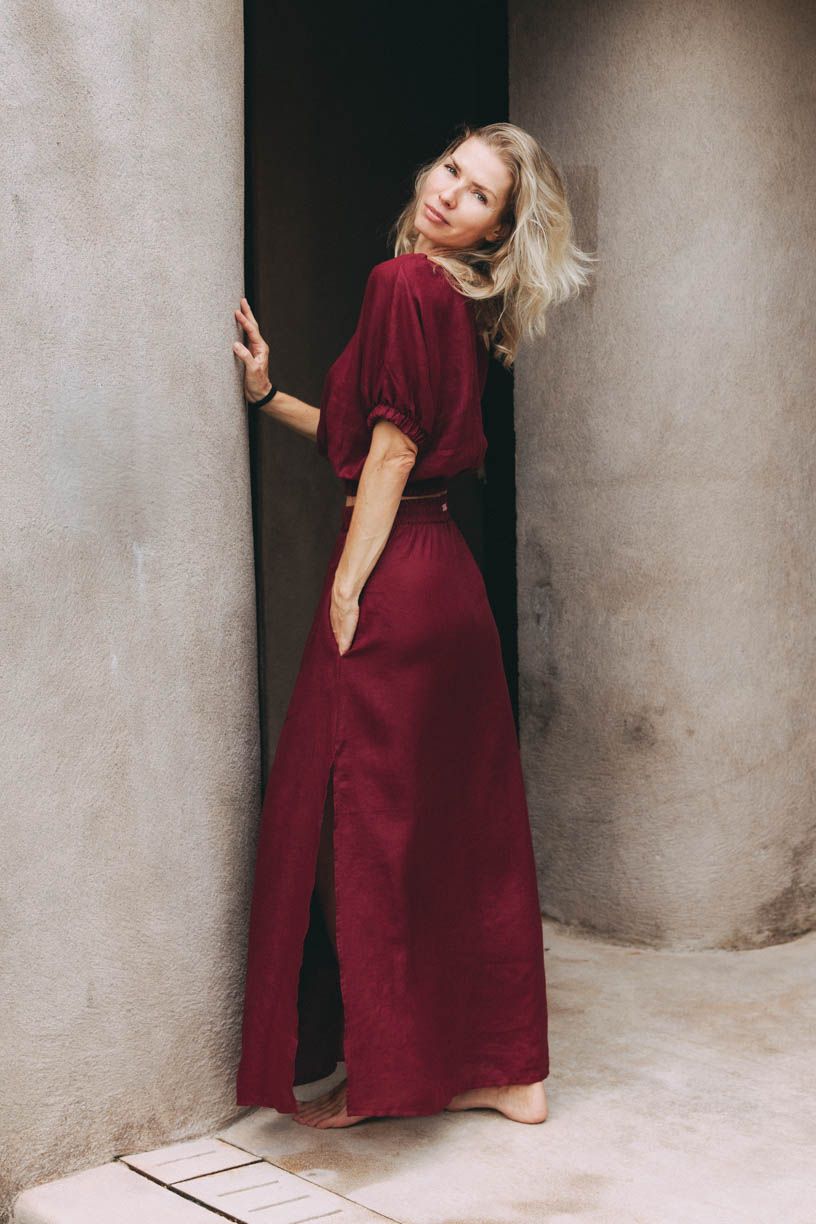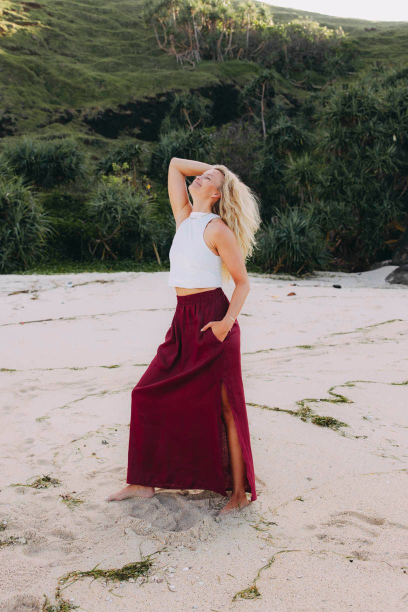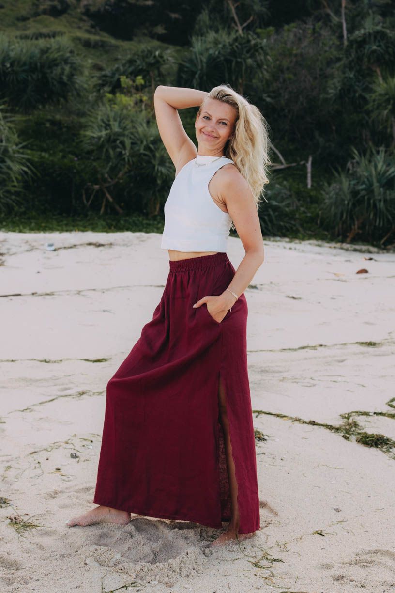 Maxi sukně, která se příjemně vlní kolem nohou při každém kroku po rozpáleném písku, přesně to je Made Kimaya. Lehká, vzdušná, otestovaná na Bali samotnými Balijkami.