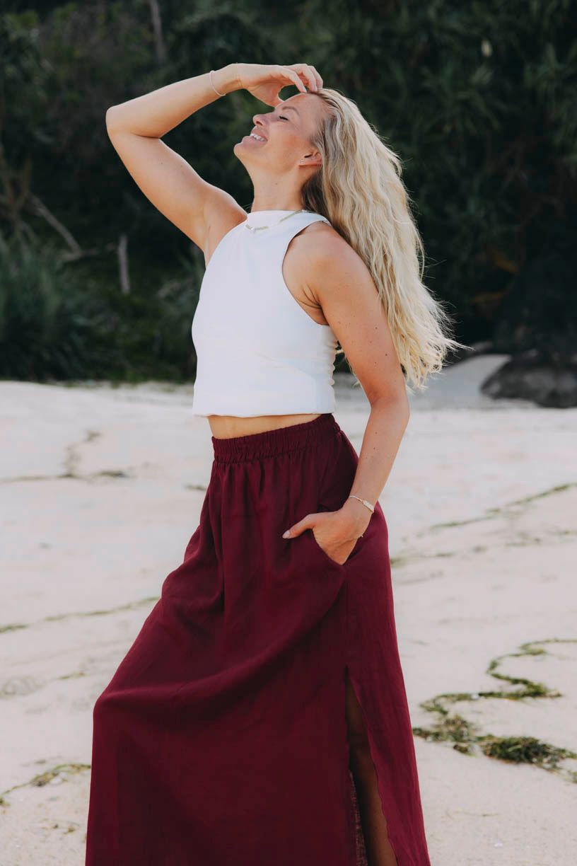 Maxi sukně je nezbytností pro každou letní dovolenou. Jemný materiál a skvěle kombinovatelná barva udělají z Made Kimaya vaši favoritku.