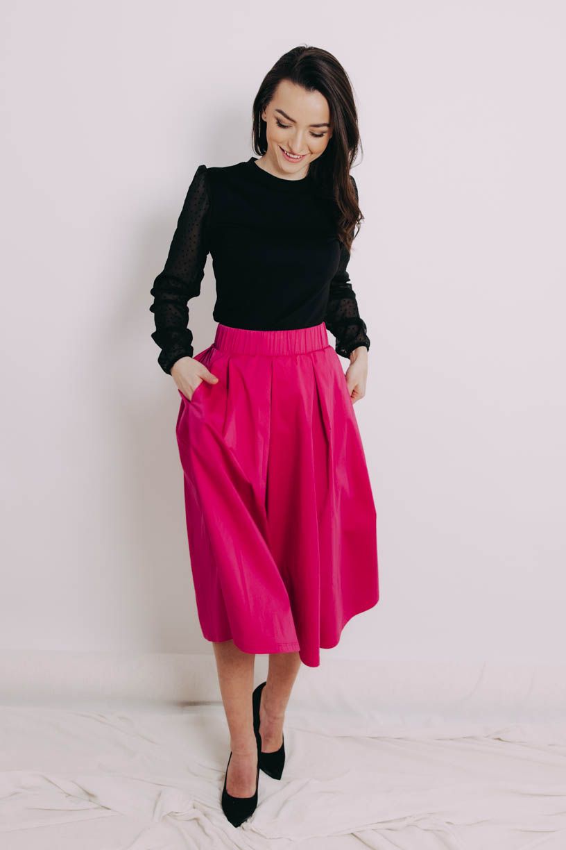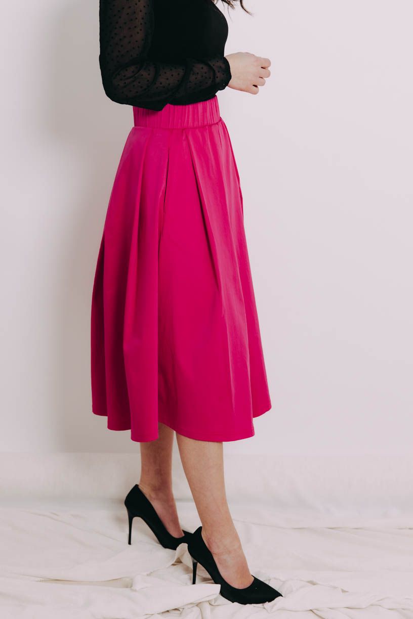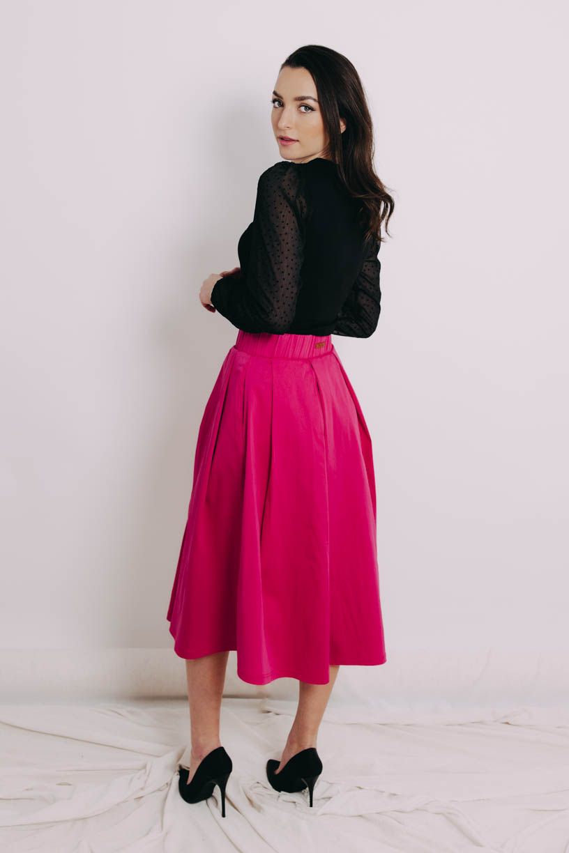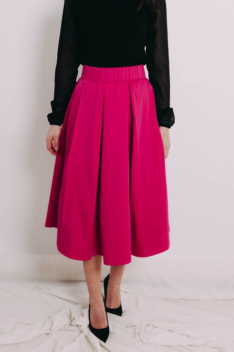 Dejte nudě v šatníku vale. Se sukní Malkia Midi Hot Pink v ideální střední délce se fakt při kombinování opravdu nudit nebudete.