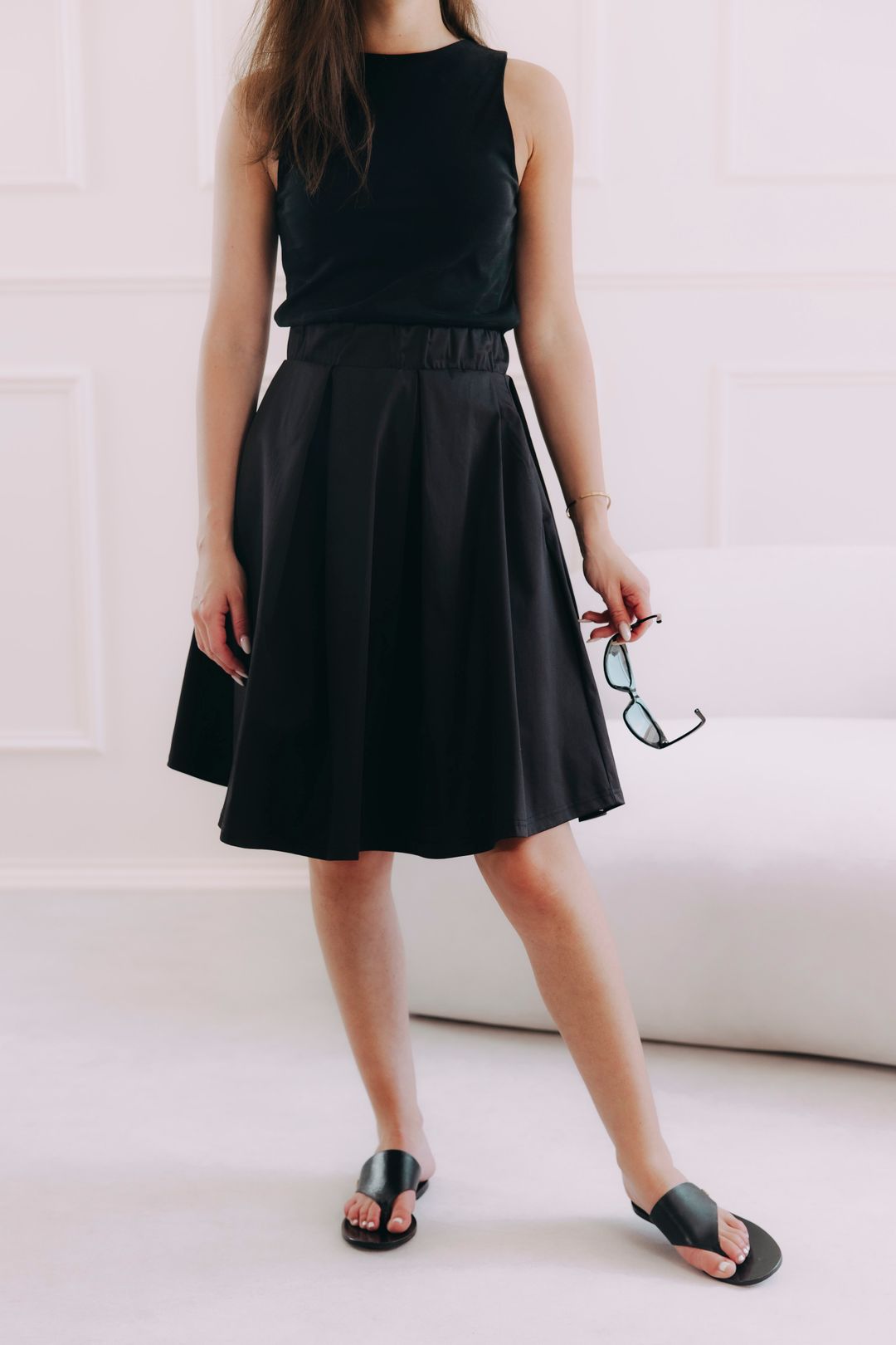 Krátkou černou sukni Malkia oceníte pro její univerzálnost. Je skvělá jako základ pro vymýšlení všemožných outfitů, ať už elegantních, nebo ležérních.