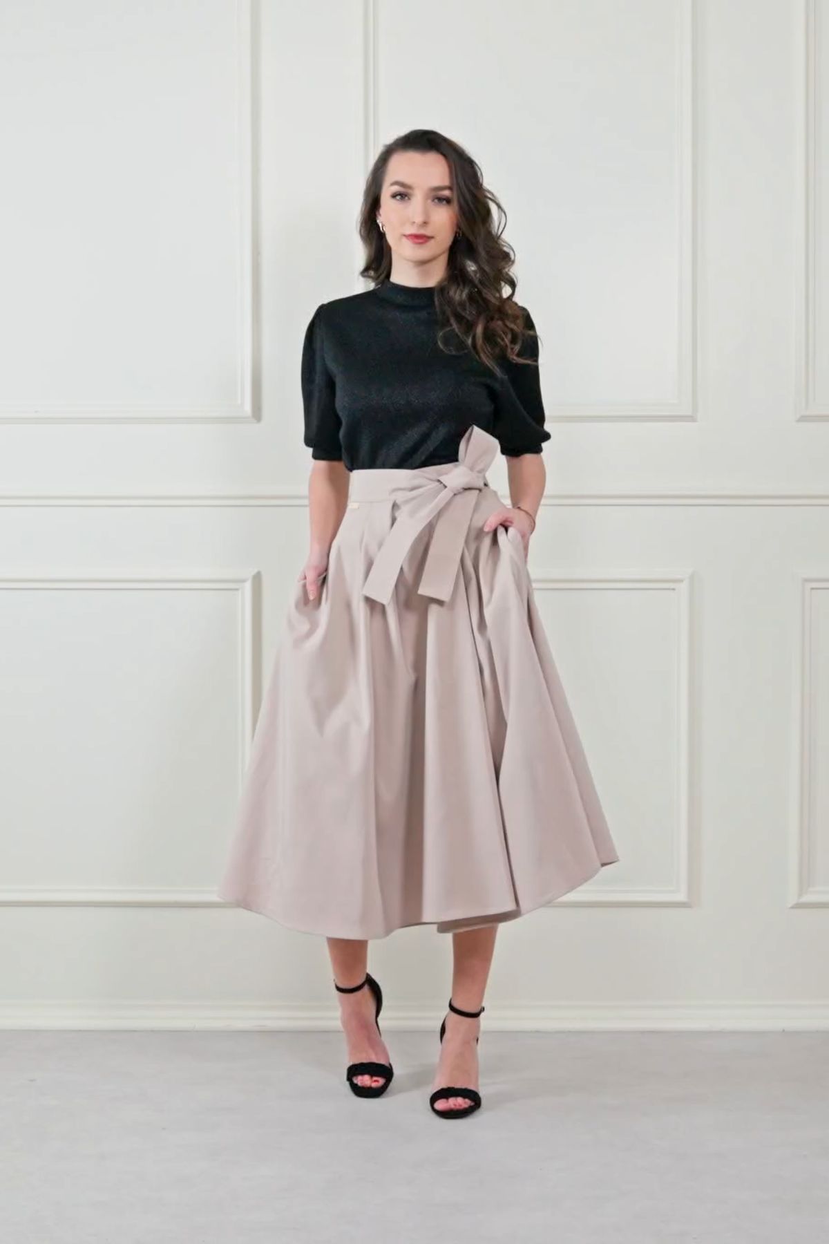 Fantazii se meze nekladou. Mawe se snadno kombinuje s tím, co už máte v šatníku. V létě ji zkombinujte s crop topem, elegantní košilí nebo s body. Až se ochladí, nebojte se ji vrstvit – skvěle vypadá s punčoškami, rolákem a koženou bundou. Stuha v pase je dokonalým detailem pro uvázání mašle, která celý outfit posune na vyšší úroveň.
