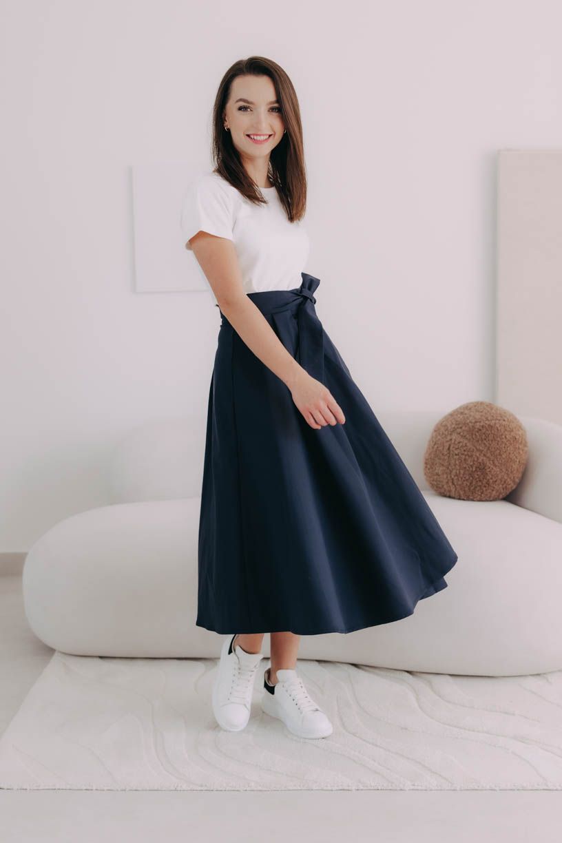 Mawe je chytrá spojka mezi pohodlím a stylem. Díky zavinovacímu střihu se dokonale přizpůsobí vaší postavě, mašle v pase dodá ženský akcent a kvalitní materiál zajistí, že vám vydrží roky. Udržitelná móda? Splňuje na jedničku. Sukně pro každou postavu? Rozhodně. Umí zdůraznit přednosti a šikovně zakrýt, co je potřeba. Zkrátka oblíbená sukně po celý rok.