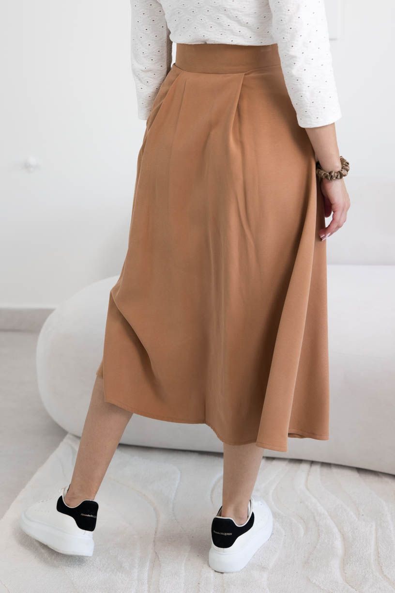Sukně má nastavitelný pas pomocí čtyř knoflíků, takže si ji snadno přizpůsobíte. Skvělým pomocníkem vám bude naše tabulka velikostí a rozměry uvedené v popisu produktu. Pokud si nejste jistá, rádi vám s výběrem pomůžeme.