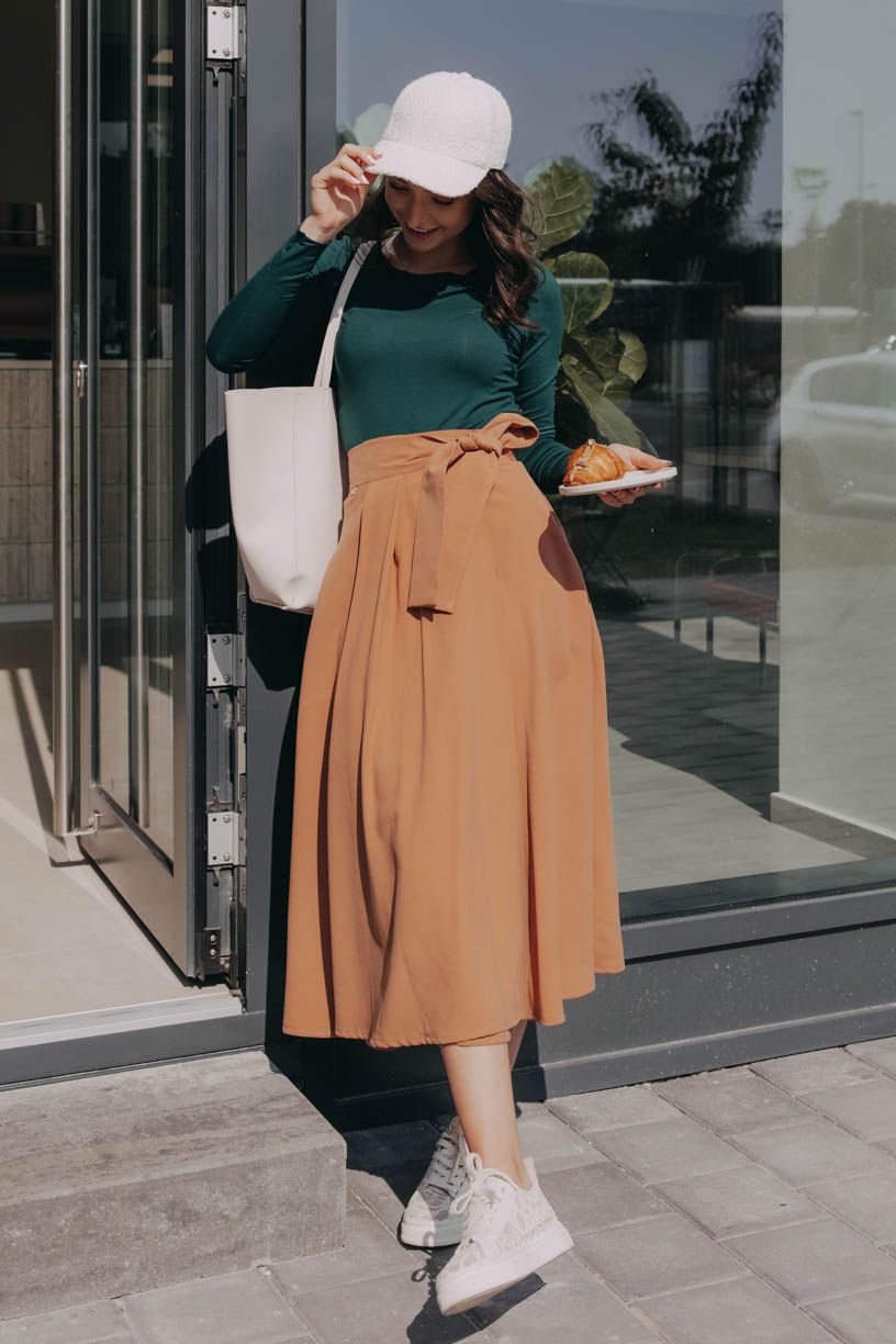 Fantazii se meze nekladou. Mawe se snadno kombinuje s tím, co už máte v šatníku. V létě ji zkombinujte s crop topem, elegantní košilí nebo s body. Až se ochladí, nebojte se ji vrstvit – skvěle vypadá s punčoškami, rolákem a koženou bundou. Stuha v pase je dokonalým detailem pro uvázání mašle, která celý outfit posune na vyšší úroveň.