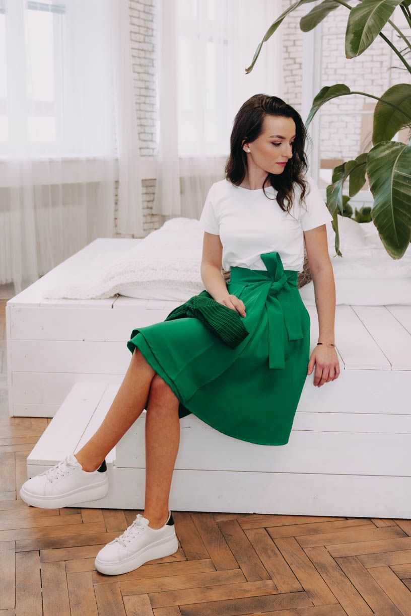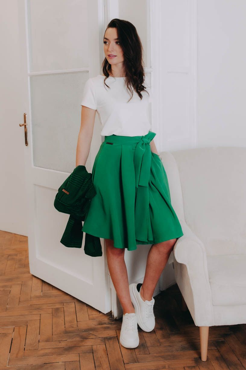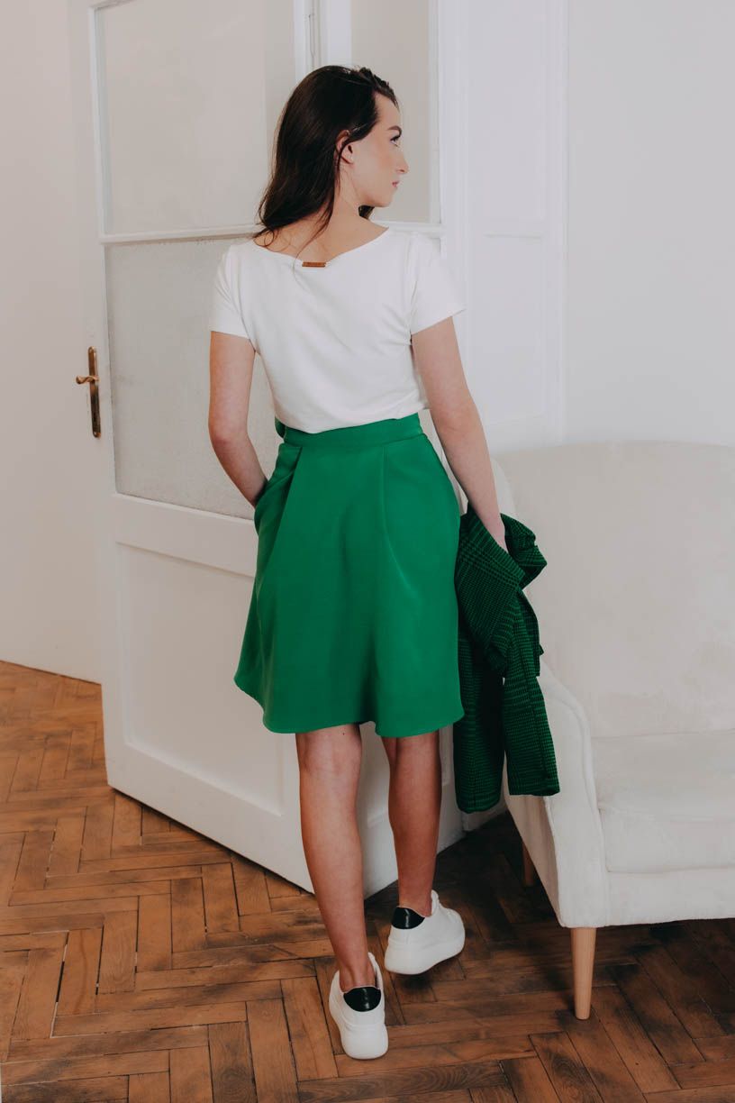 Zelená áčkovka Mawe si se svoji starší ségrou v ničem nezadá. Zavinovací, pohodlná, skvěle kombinovatelná, no prostě stejně skvělá. Jen krapítek kratší.