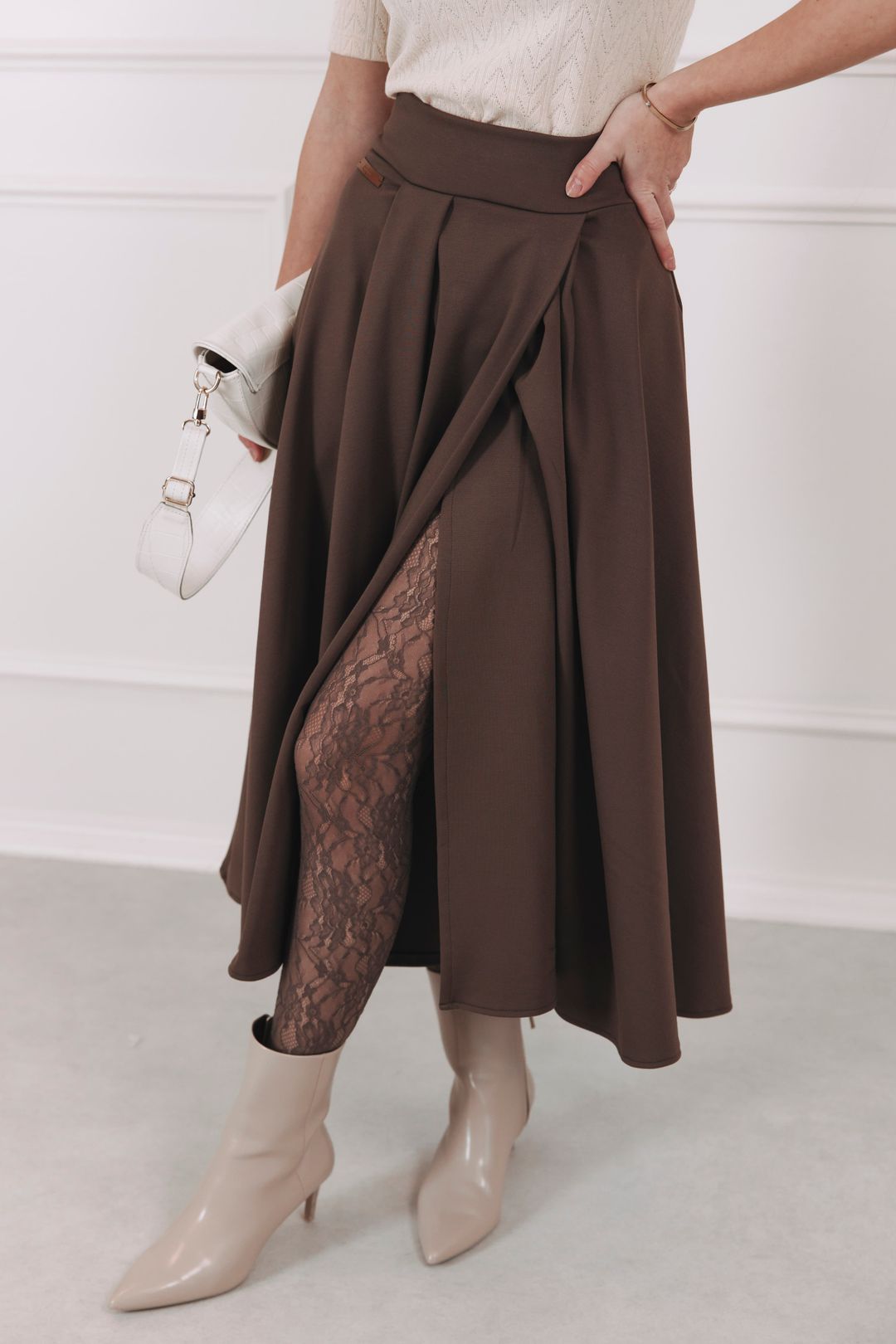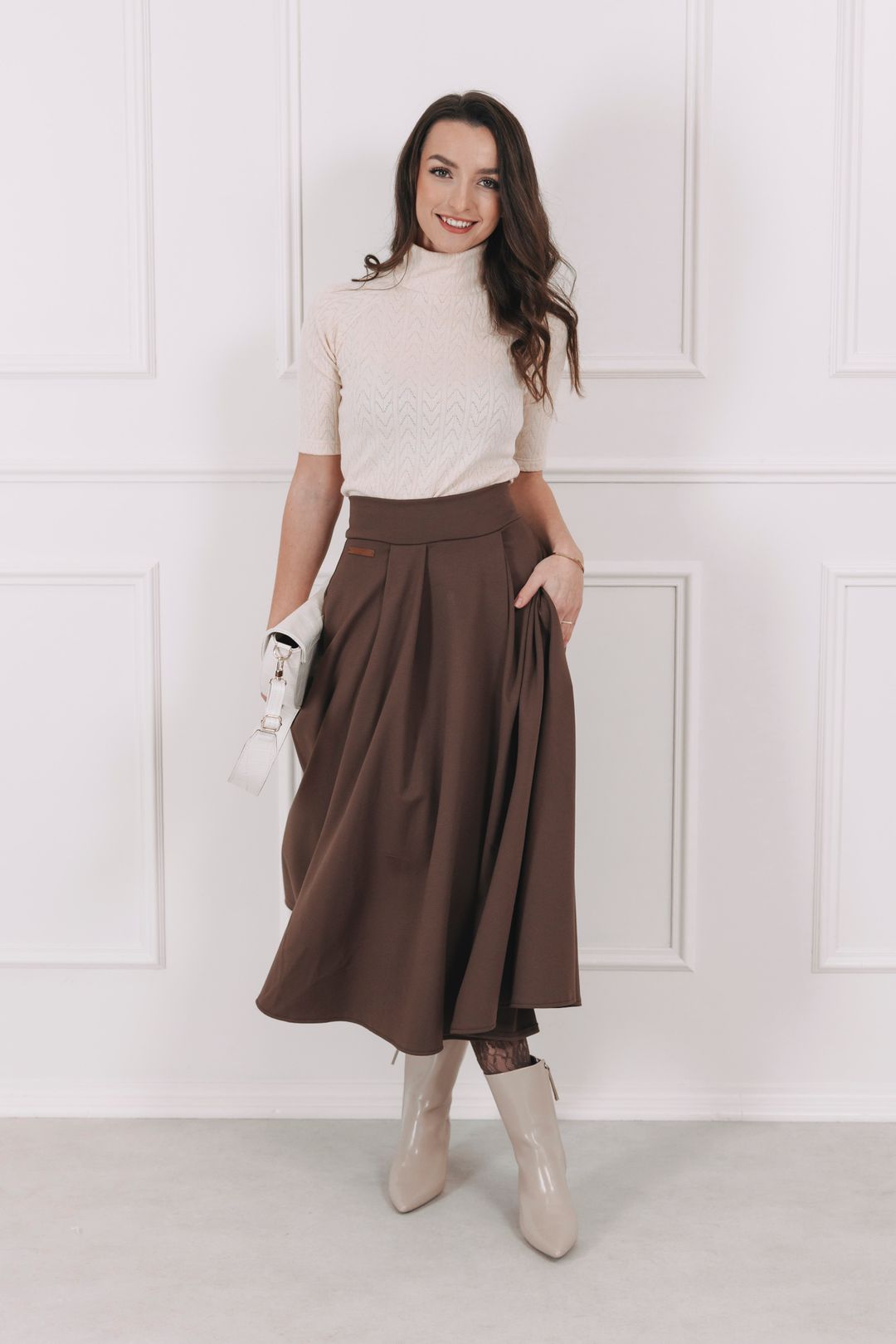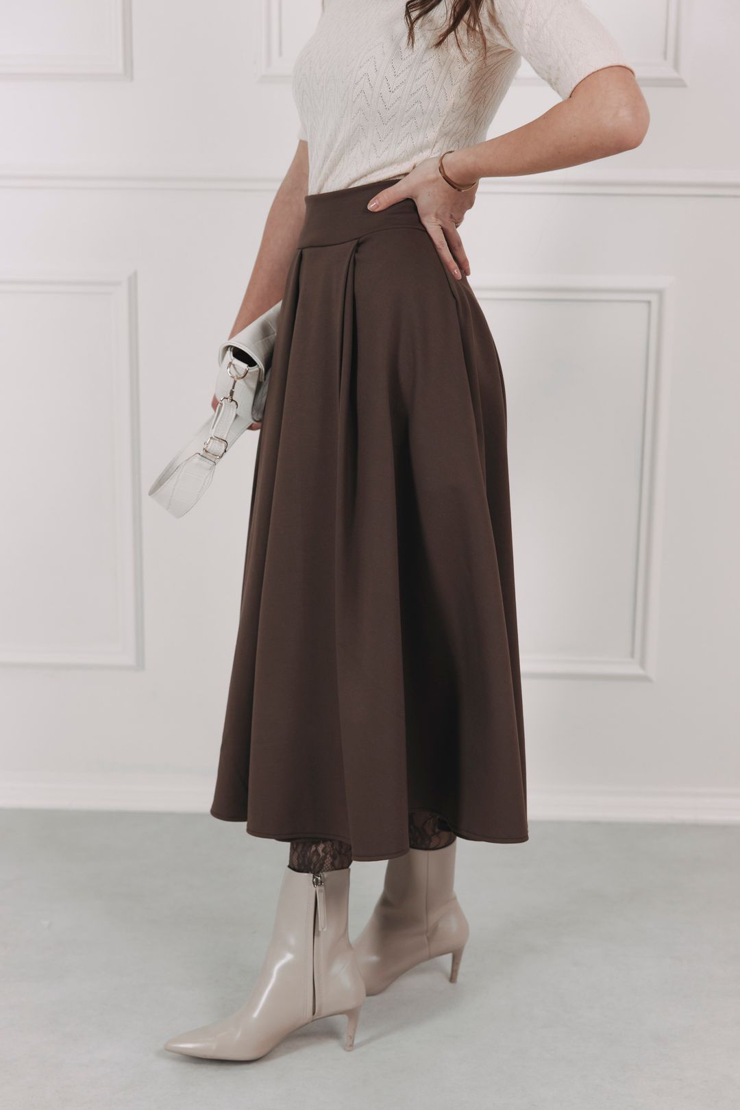 Hnědá midi sukně Mawi je navržena jako celoroční sukně.
