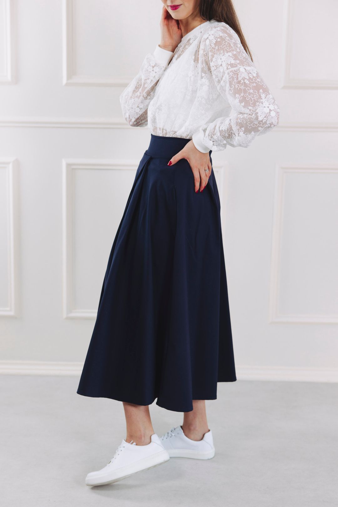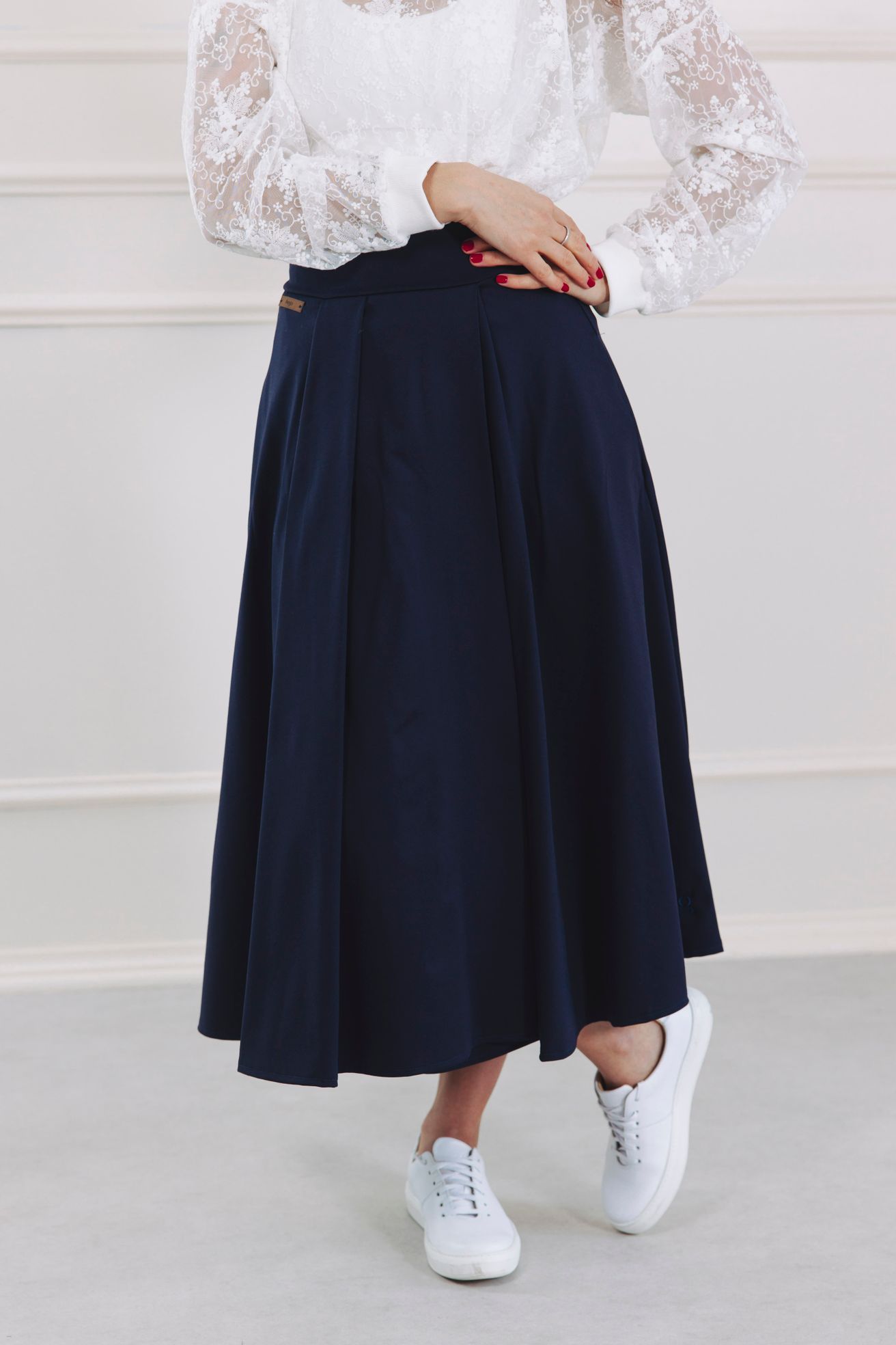 Navy midi sukně Mawi je navržena jako celoroční sukně.