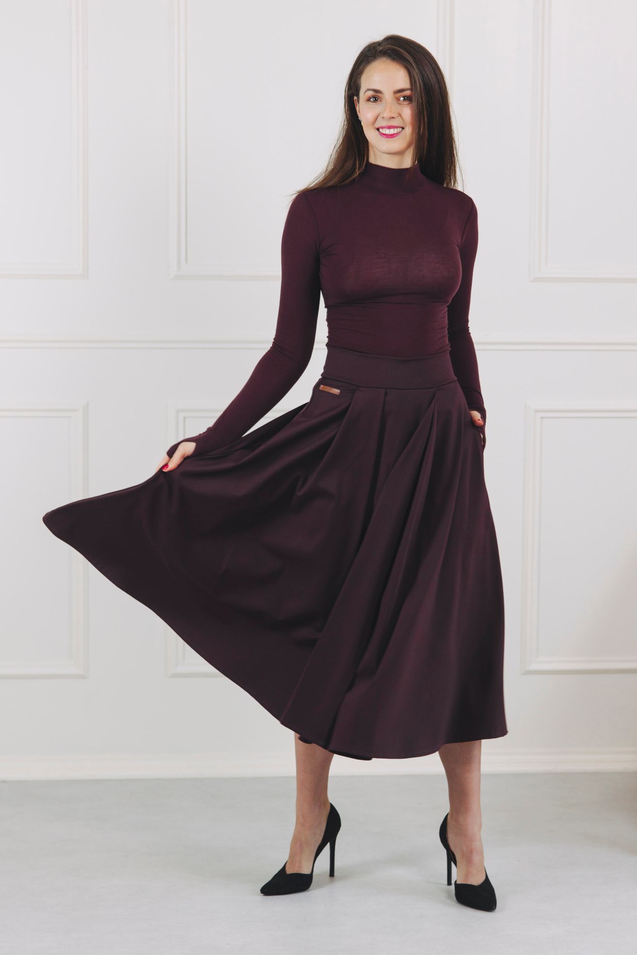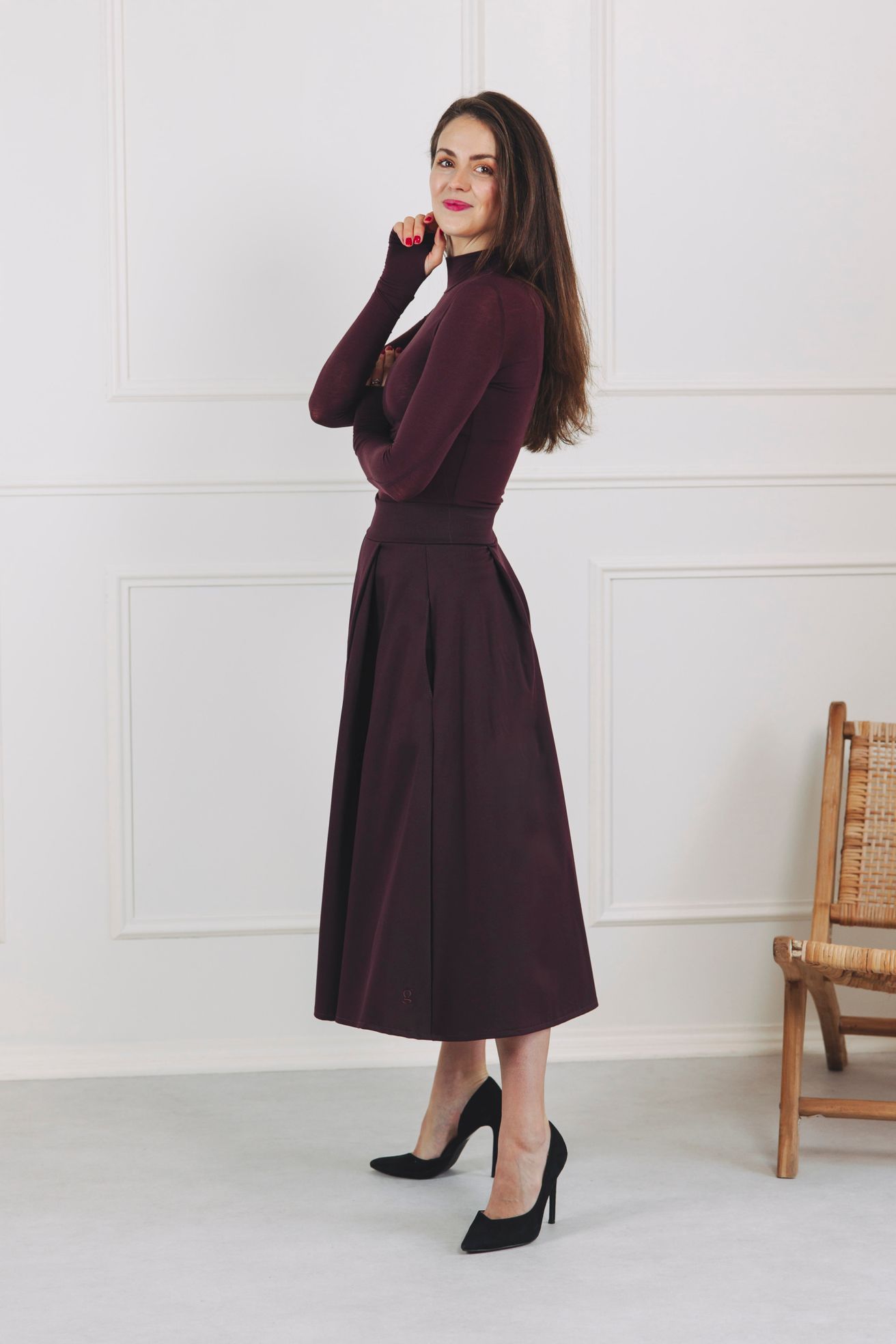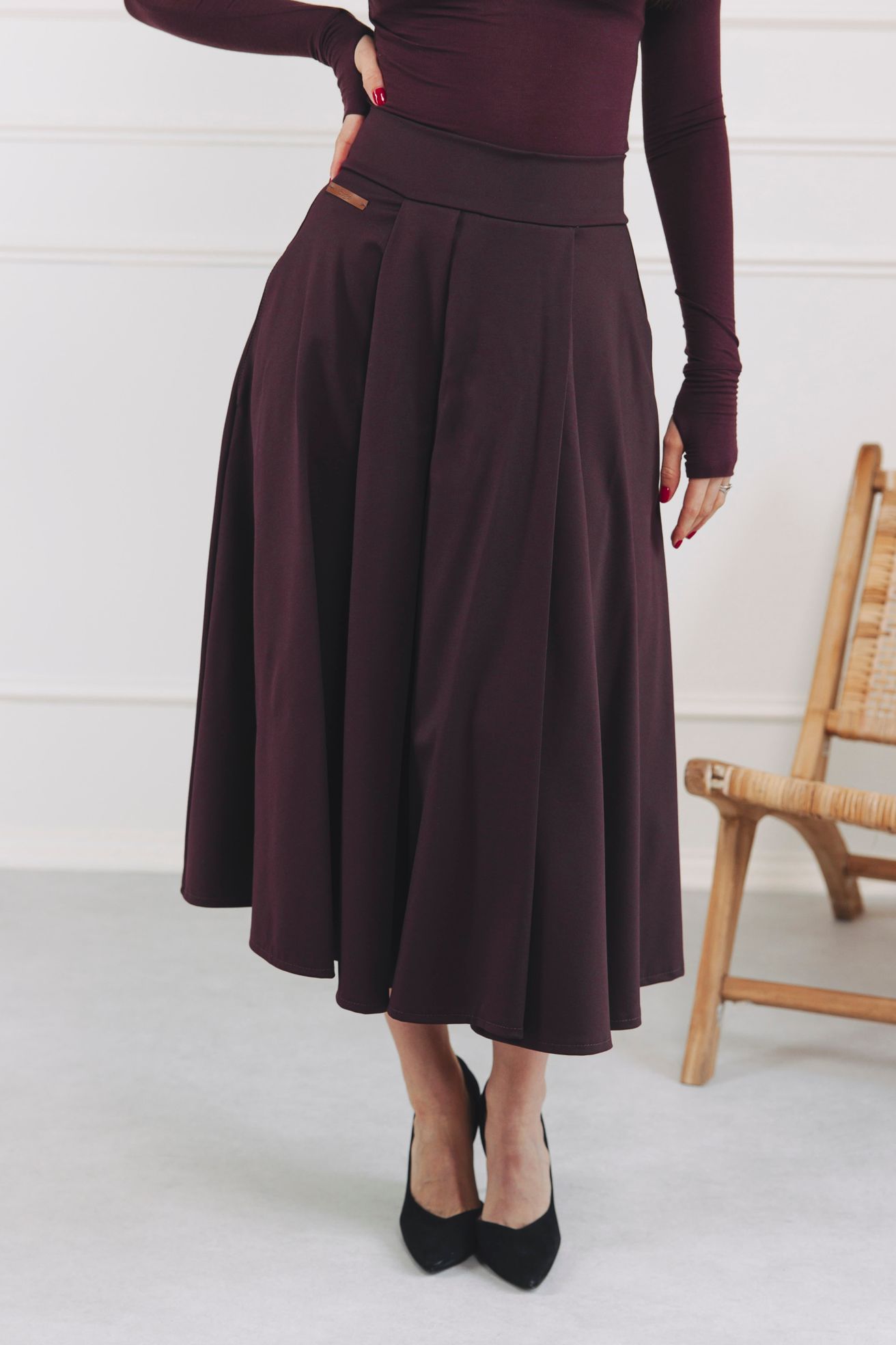 Vínová midi sukně Mawi je navržena jako celoroční sukně.