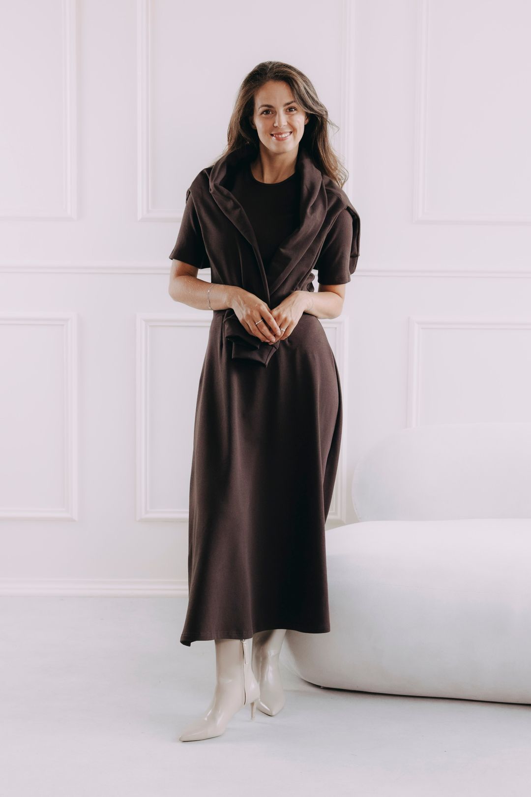 - Délka: Midi délka, která skvěle sluší každé postavě i obuvi, kterou k ní zvolíte.
