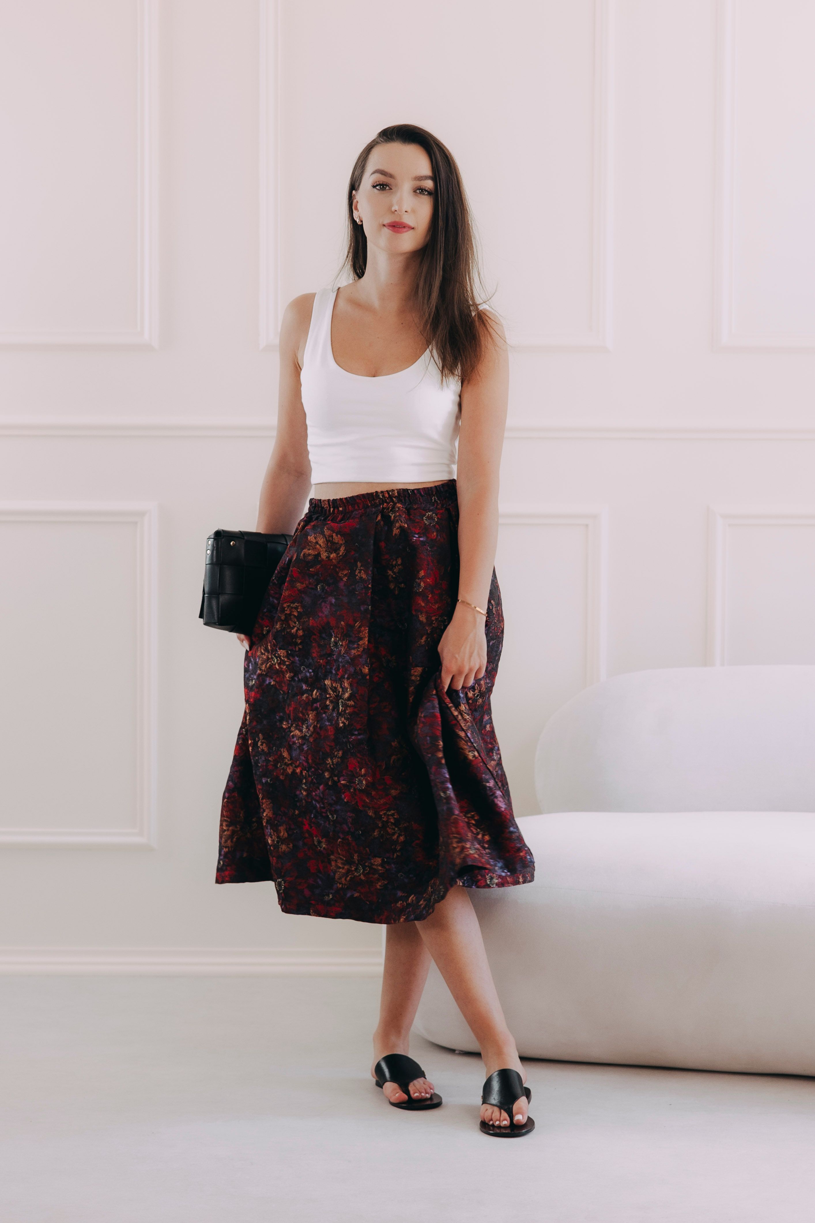 Pokud toužíte po tom strhnout na sebe pozornost, žakárová sukně Naki vás s grácií vynese na módní piedestal. Nejenže její áčkový střih perfektně drží tvar, ale žakárový materiál má navíc jemnou strukturu, která celému outfitu okamžitě přidá hloubku. V pase vás potěší pohodlná guma a velká odepínací mašle v barvě sukně.