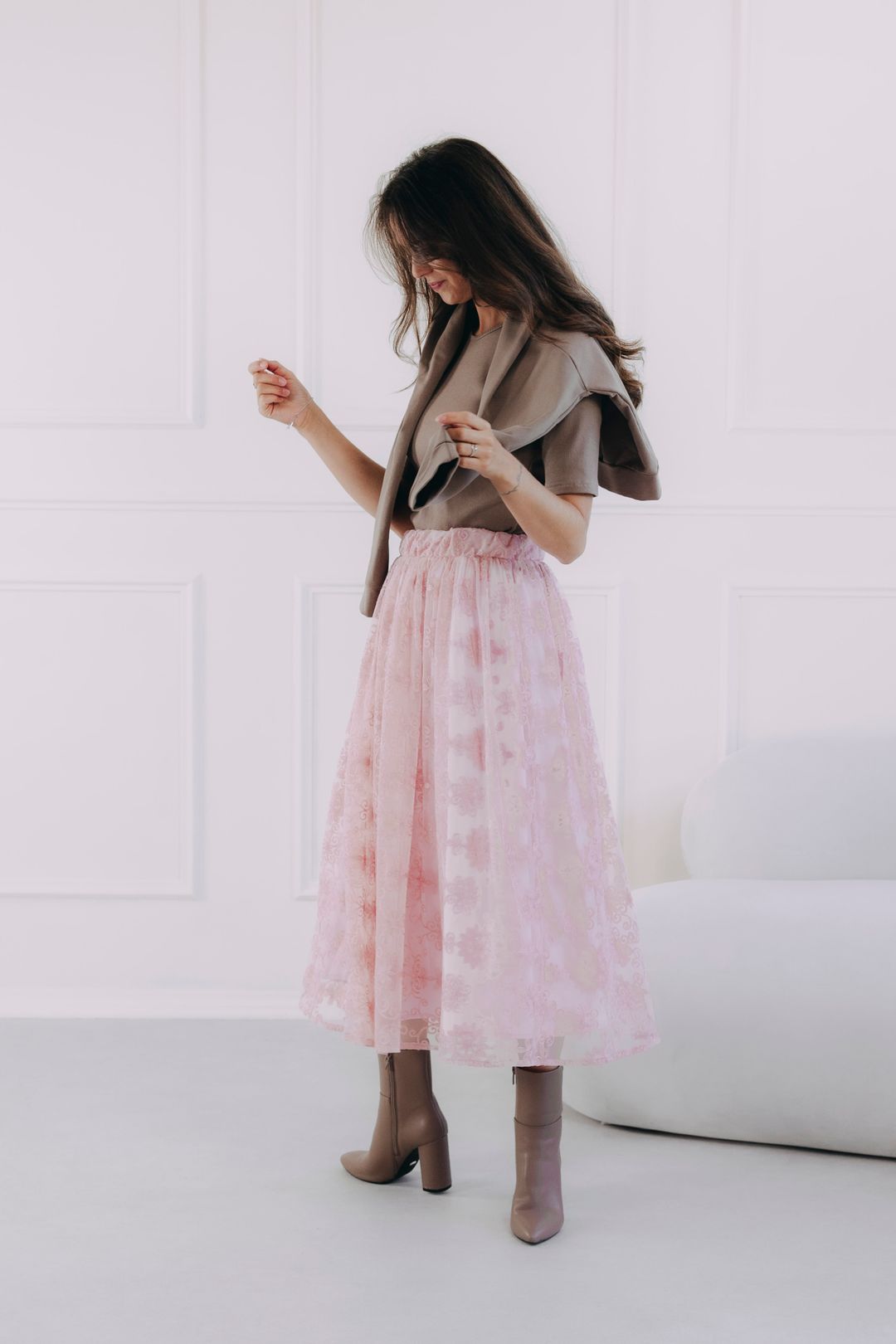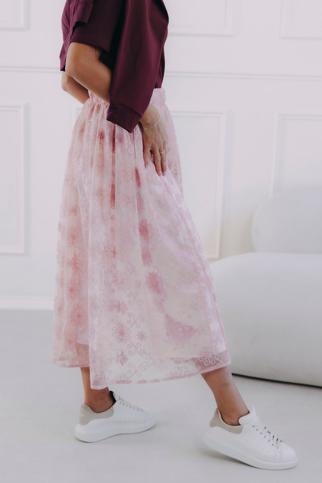 Připravte se na to, že se zamilujete! Naše sukně Nalia v jemné starorůžové barvě je přesně ten kousek, který vás bude bavit a posune váš styl na novou úroveň. Její propracovaná krajka je nejen krásná, ale i příjemná na dotek a díky kvalitní podšívce se nemusíte bát, že by kousala. Tato sukně je navržená tak, aby v sobě ukrývala dvě duše – jednu romantickoua druhou rebelskou. S Naliou se můžete v mžiku proměnit z něžné víly v odvážnou punkovou princeznu. Vše, co k tomu potřebujete, jsou ty správné doplňky a trocha fantazie.