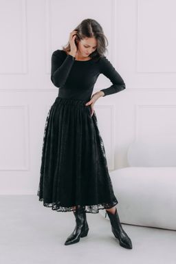 - Střih a délka: Ležérní a elegantní střih lichotí každé postavě. Ideální délka sukně do půli lýtek opticky prodlužuje nohy a je univerzální pro různé příležitosti.