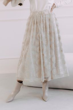 - Materiál: Sukně je ušita ze dvou vrstev pro maximální pohodlí. Vrchní část tvoří jemná krajka, která dodává sukni vzdušný a romantický vzhled. Spodní vrstva, příjemná podšívka, zajišťuje komfortní nošení.