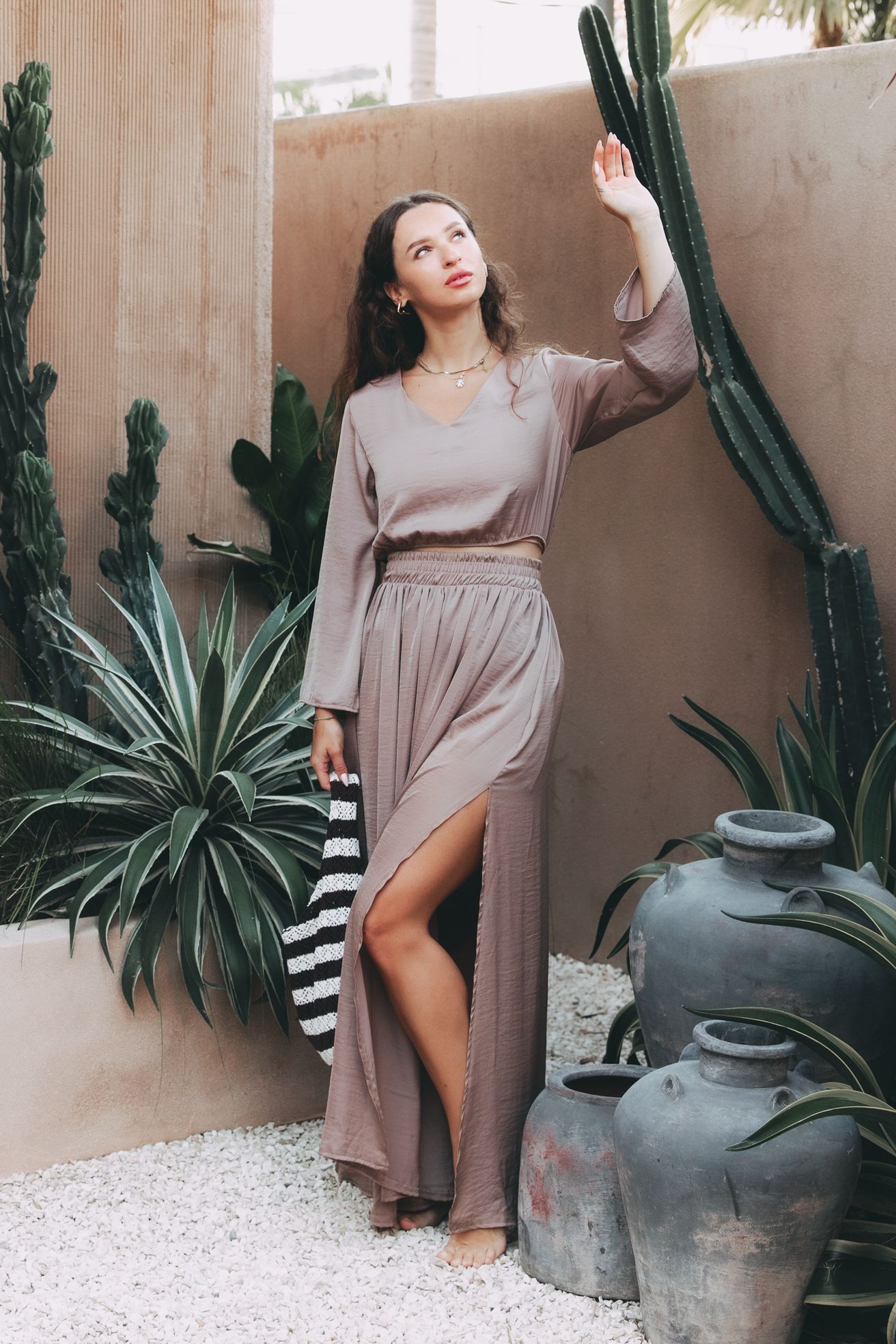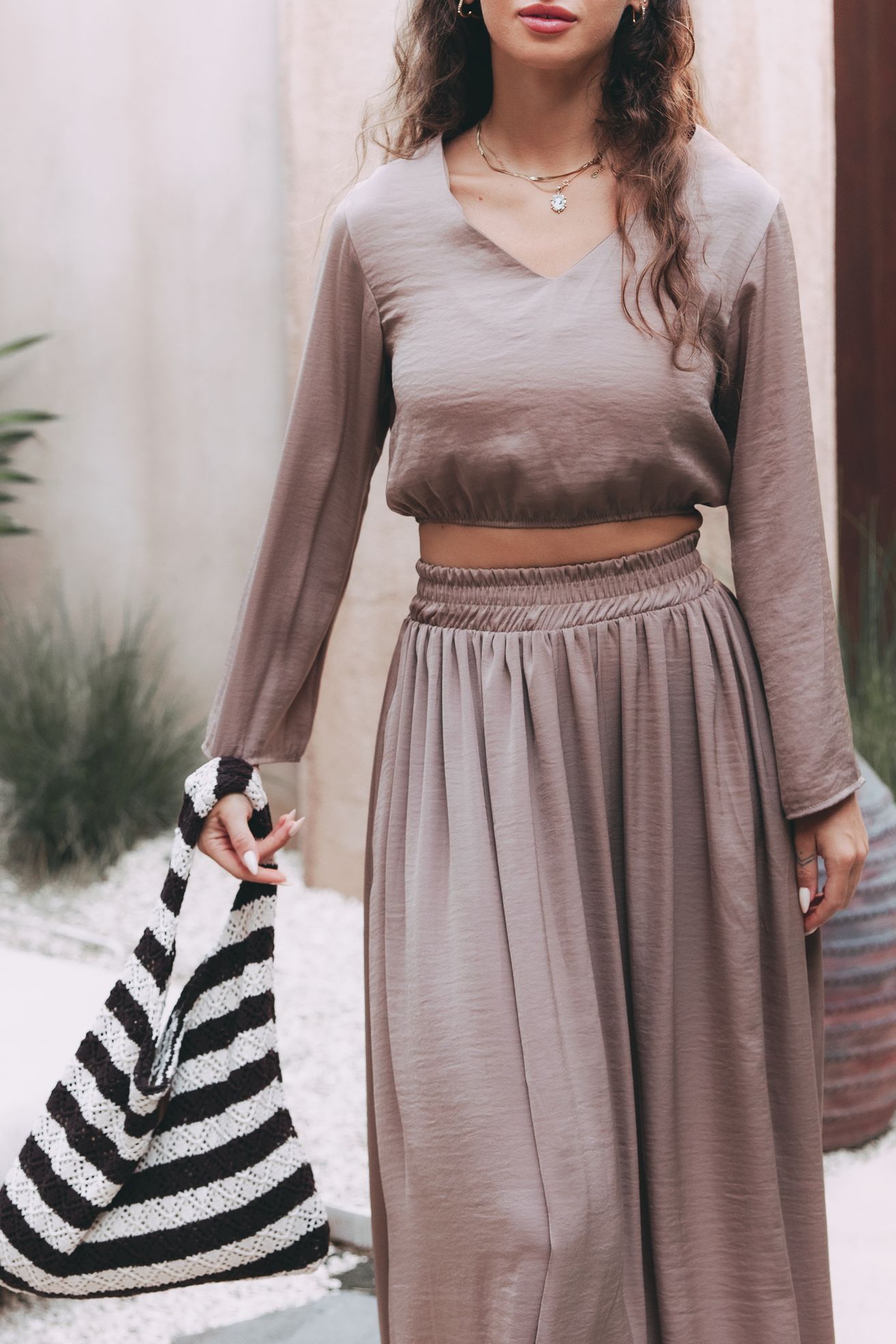 Sukně spolu s topem Reta tvoří nespoutaný boho komplet. Látka sahá až ke kotníkům a vzdušně vlaje s každým vaším krokem. Nechybí praktické kapsy a jemně odvážný rozparek jí dodává ten správný šmrnc.