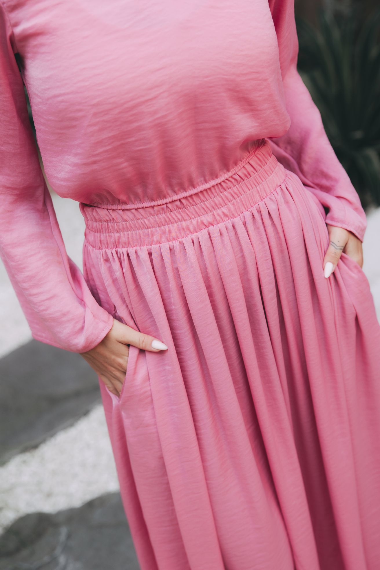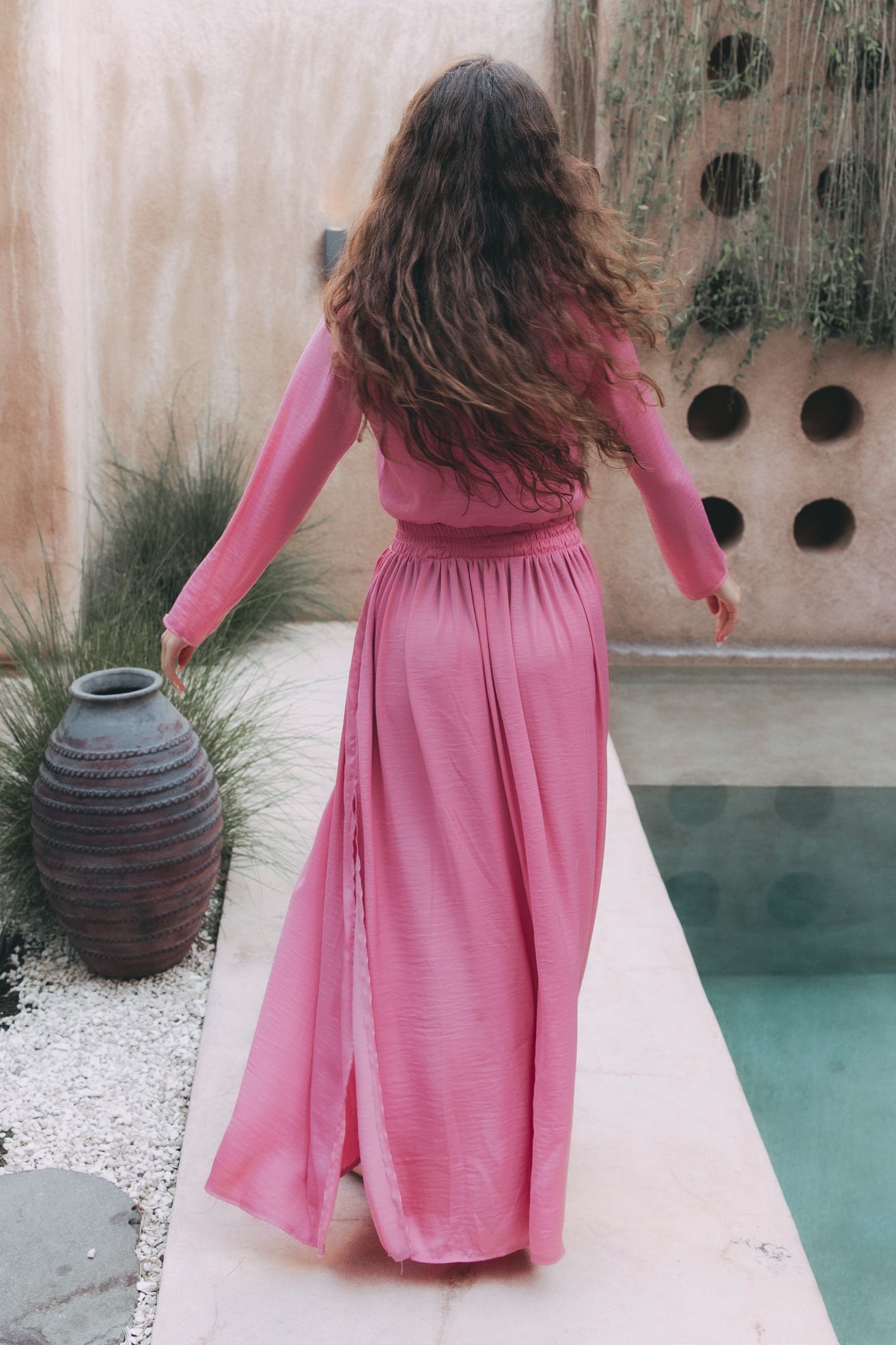 Sukně spolu s topem Reta tvoří nespoutaný boho komplet. Látka sahá až ke kotníkům a vzdušně vlaje s každým vaším krokem. Nechybí praktické kapsy a jemně odvážný rozparek jí dodává ten správný šmrnc.