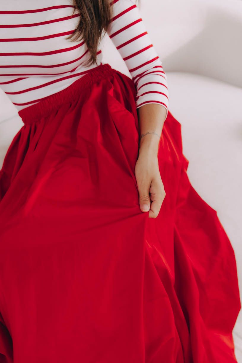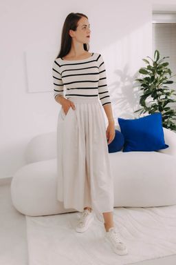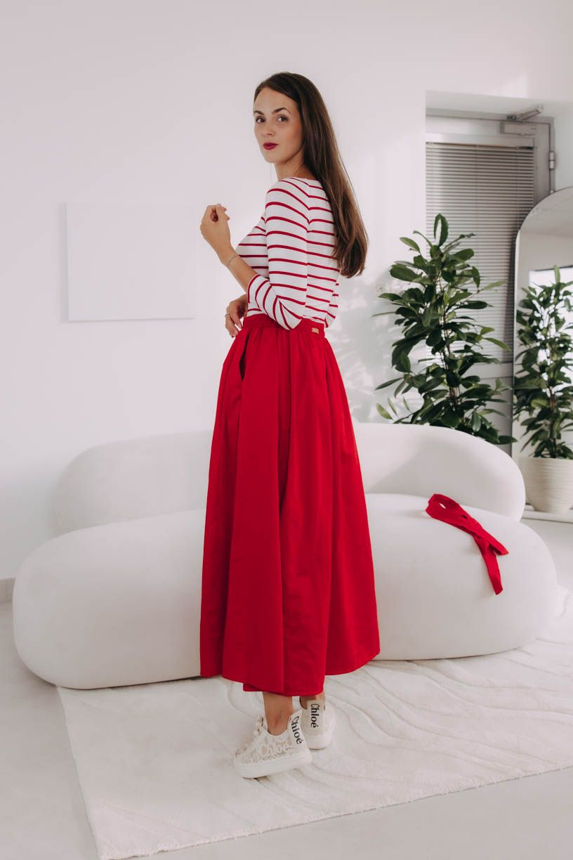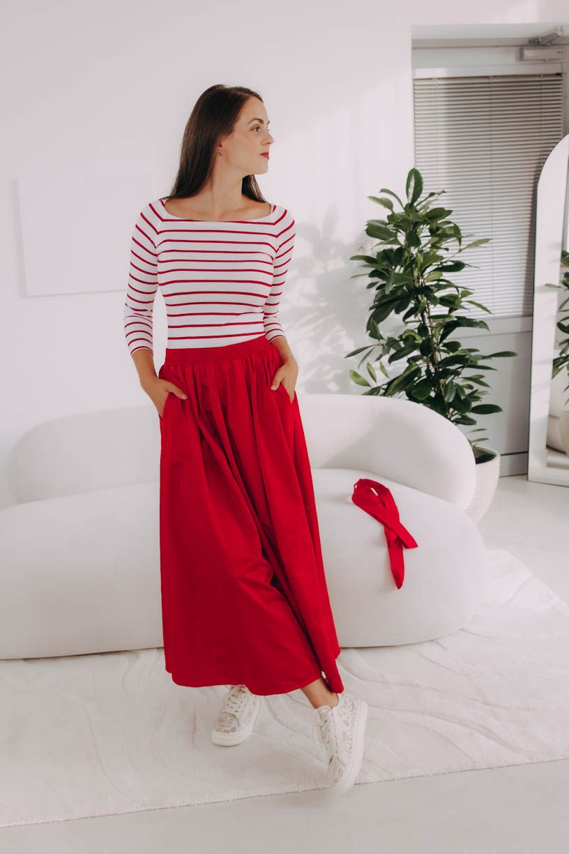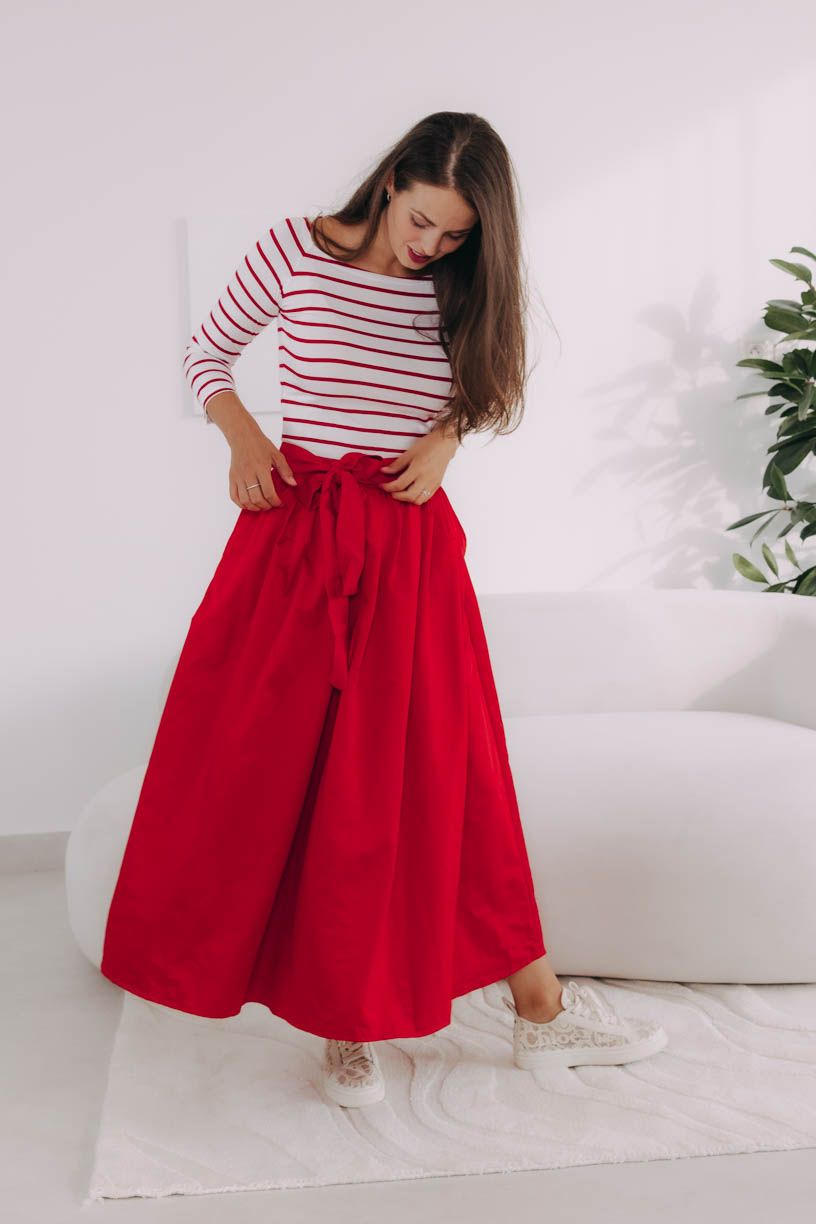 Jak je u Bugy zvykem, jde o velmi příjemný kousek – o pohodlí se postará pružná guma v pase, díky níž sukně skvěle drží, vytváří decentní řasení a můžete si i pohrát s podkasáním trička nebo košile.