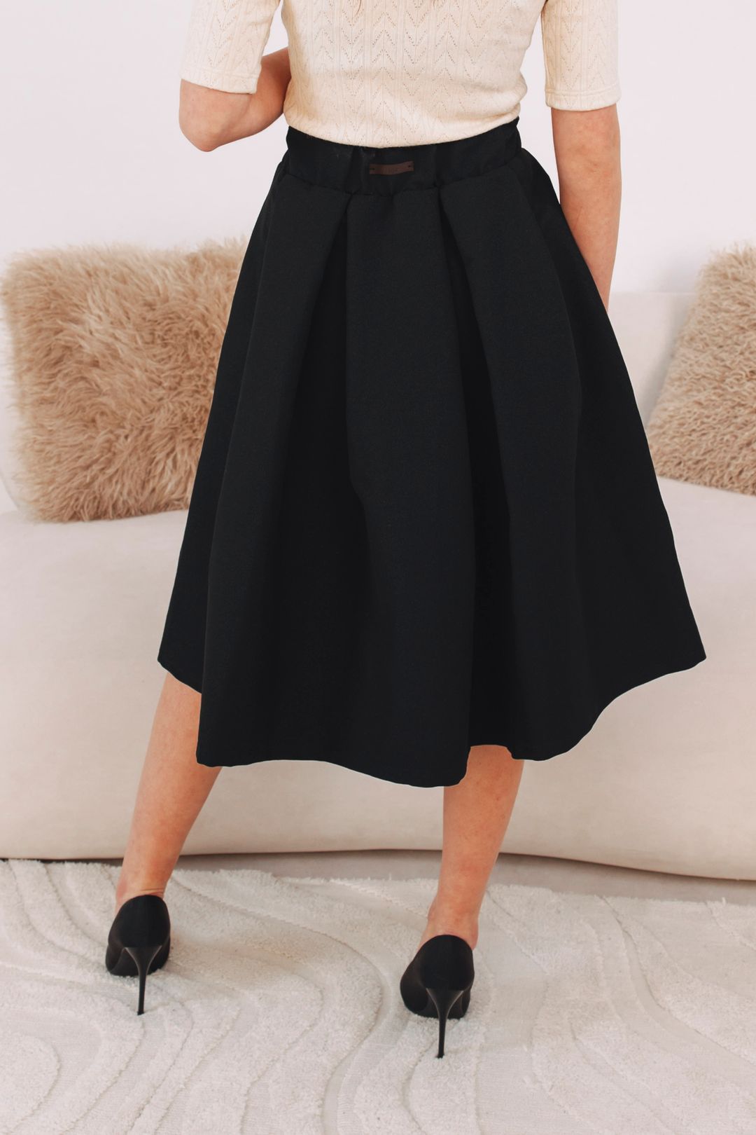 - Střih: Nabíraná sukně s délkou ke kolenům. Klasický, ale zároveň moderní áčkový střih, který skvěle sedí každé postavě.