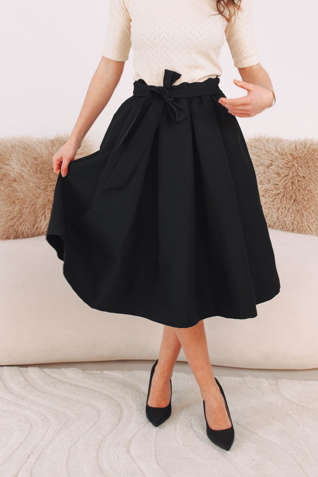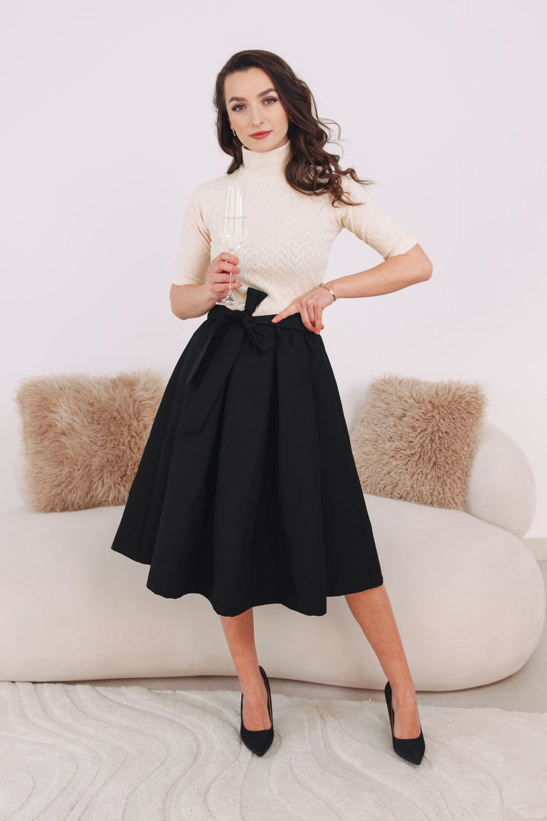 - Sváteční look: Zkombinujte ji s jednoduchým body. Obujte lodičky, přidejte minimalistické šperky, mašli do vlasů a jste připravená zazářit.