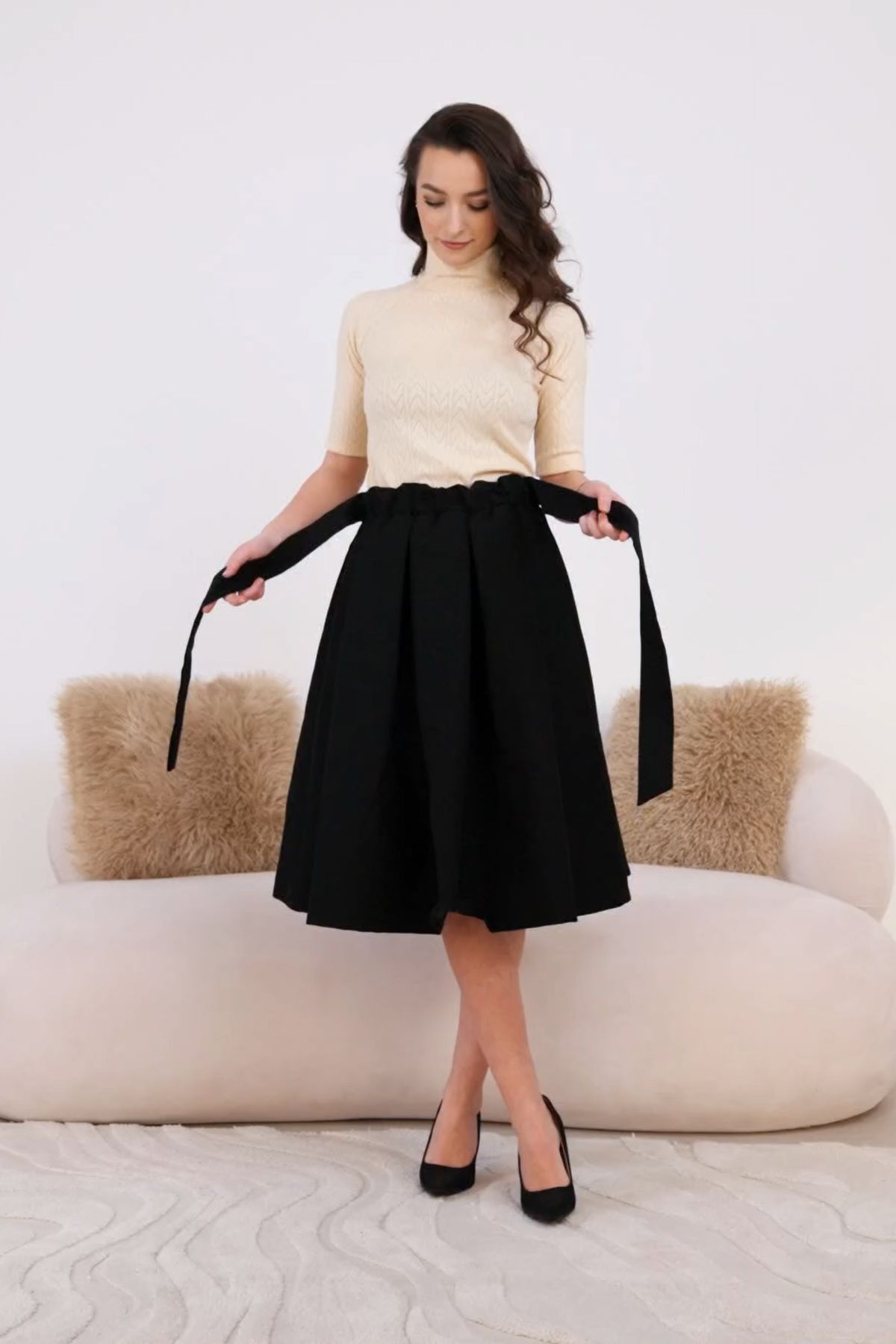 - Vhodnost: Sukně Zuri je ideální volbou na vánoční večírek, do divadla, galerie nebo ke štědrovečerní tabuli. Díky pohodlnému střihu a nemačkavému materiálu se ale skvěle hodí i jako dámská sukně do práce nebo na běžné nošení.