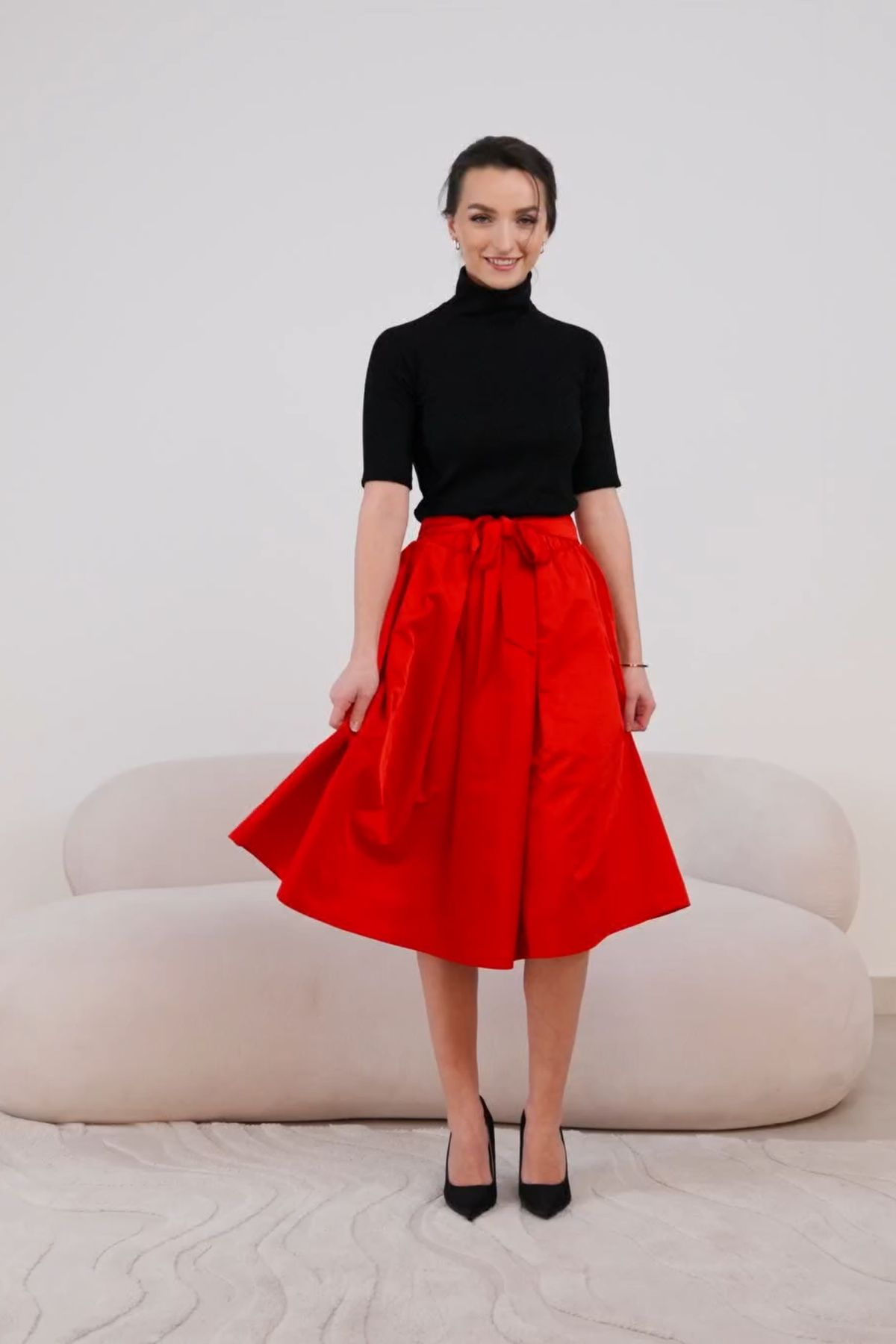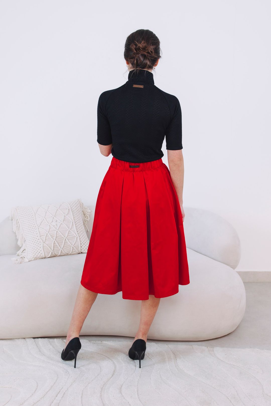 - Střih: Nabíraná sukně s délkou ke kolenům. Klasický, ale zároveň moderní áčkový střih, který skvěle sedí každé postavě.