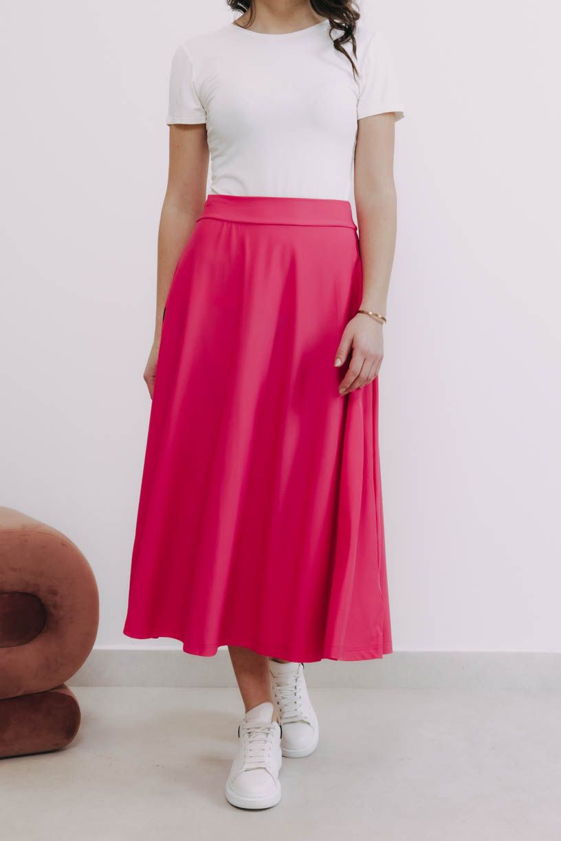 Lehká, splývavá sukně se hned zabydlí mezi vašimi oblíbenými kousky. Ušili jsme ji ze splývavé látky, která je směsí polyamidu a elastanu, zakryje i širší boky. V pase má elastickou gumu, pěkně tvaruje ženské křivky a zároveň pevně drží na místě a neposouvá se.