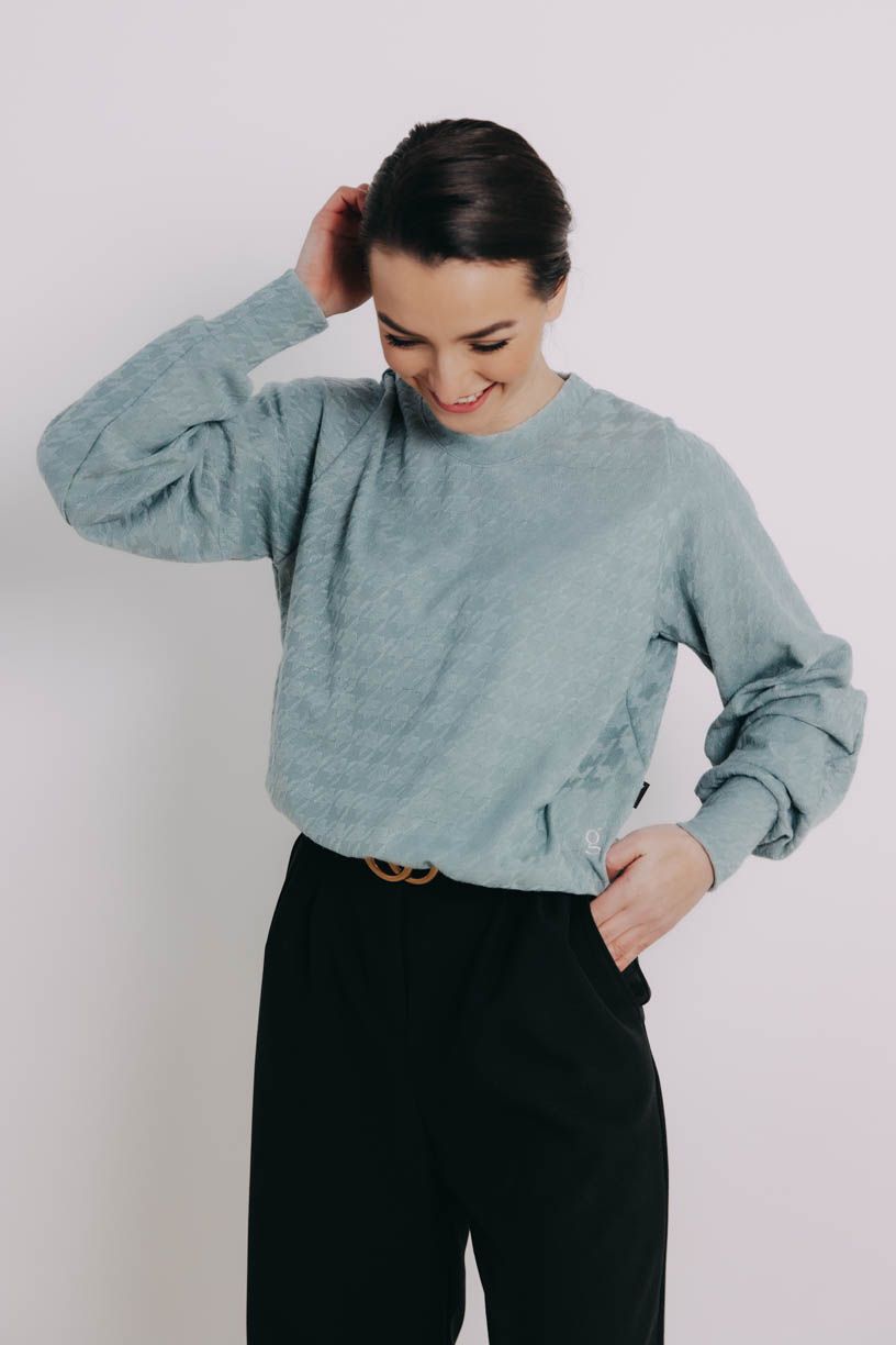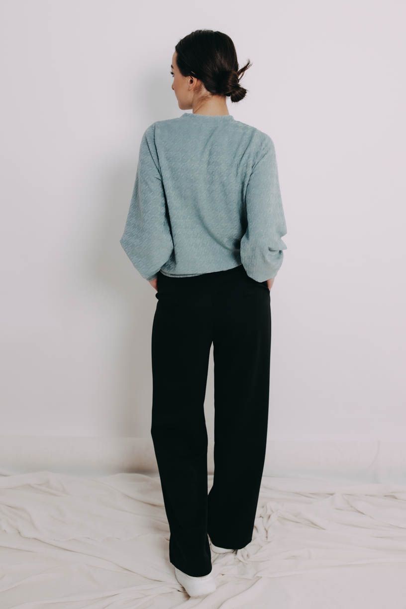 U materiálu jsme vsadili na ověřenou kombinaci viskózy s polyesterem a troškou nylonu, ze které jsou ušité i oblíbené roláčky Slam. Na těle je velmi příjemný. Jemný oversized střih má přes pas našitý širší lem, abyste si svetr mohly lehko podkasat a zakrýt bříško, pokud je to třeba.