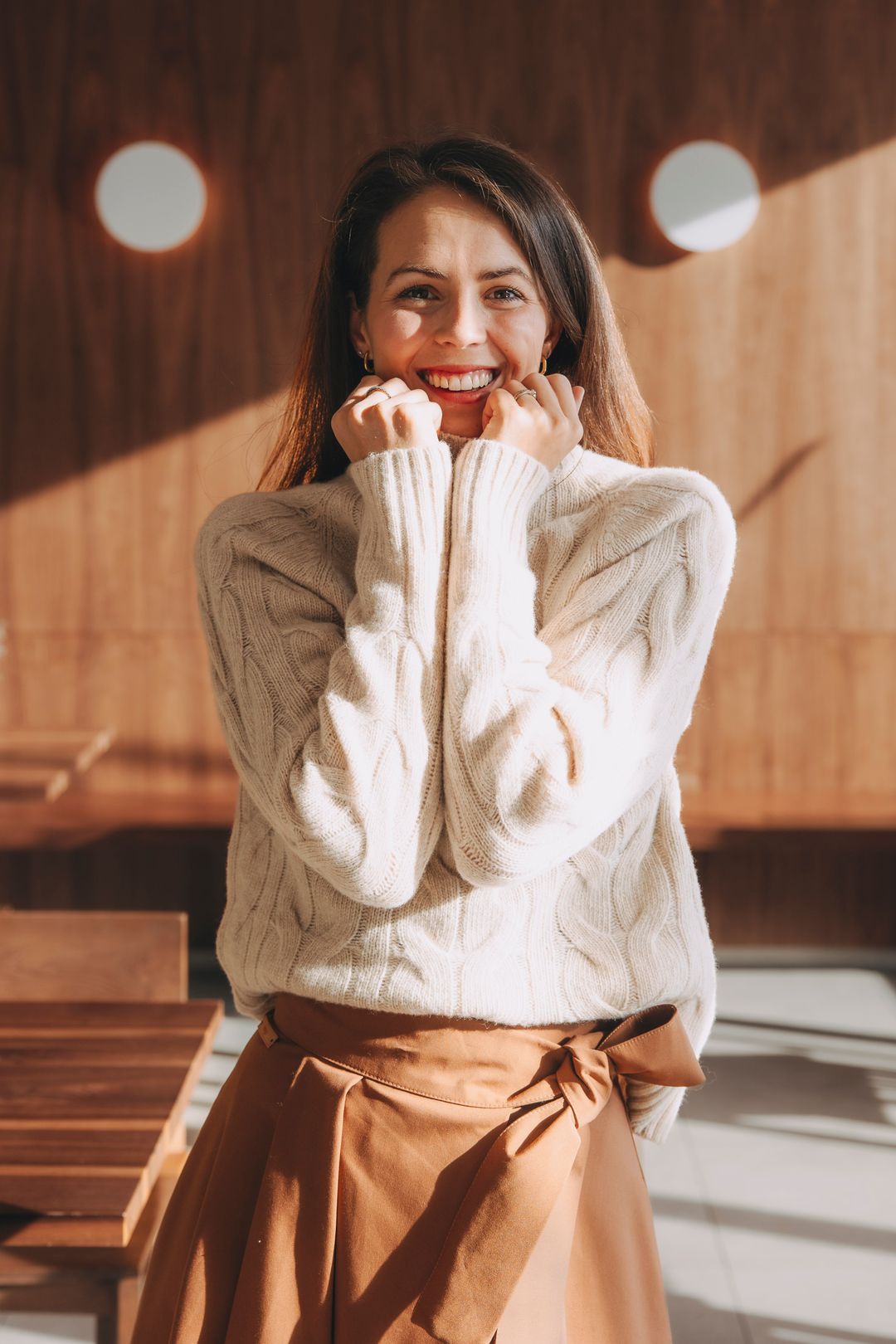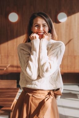 Amea je tichou oslavou čistých linií a nenucené grácie. Je to vlněný svetr, který ztělesňuje eleganci jednoduchosti a je navržen pro ženu, která nachází krásu ve struktuře a stylu. Tento kousek vás nejen zahřeje, ale je i sebevědomým vyjádřením vašeho vkusu. Funguje jako základní kámen promyšleného kapsulového šatníku. Nechte ho stát se vaším nejoblíbenějším kouskem pro chvíle, které si žádají pohodlí, styl a dotek noblesní grácie.