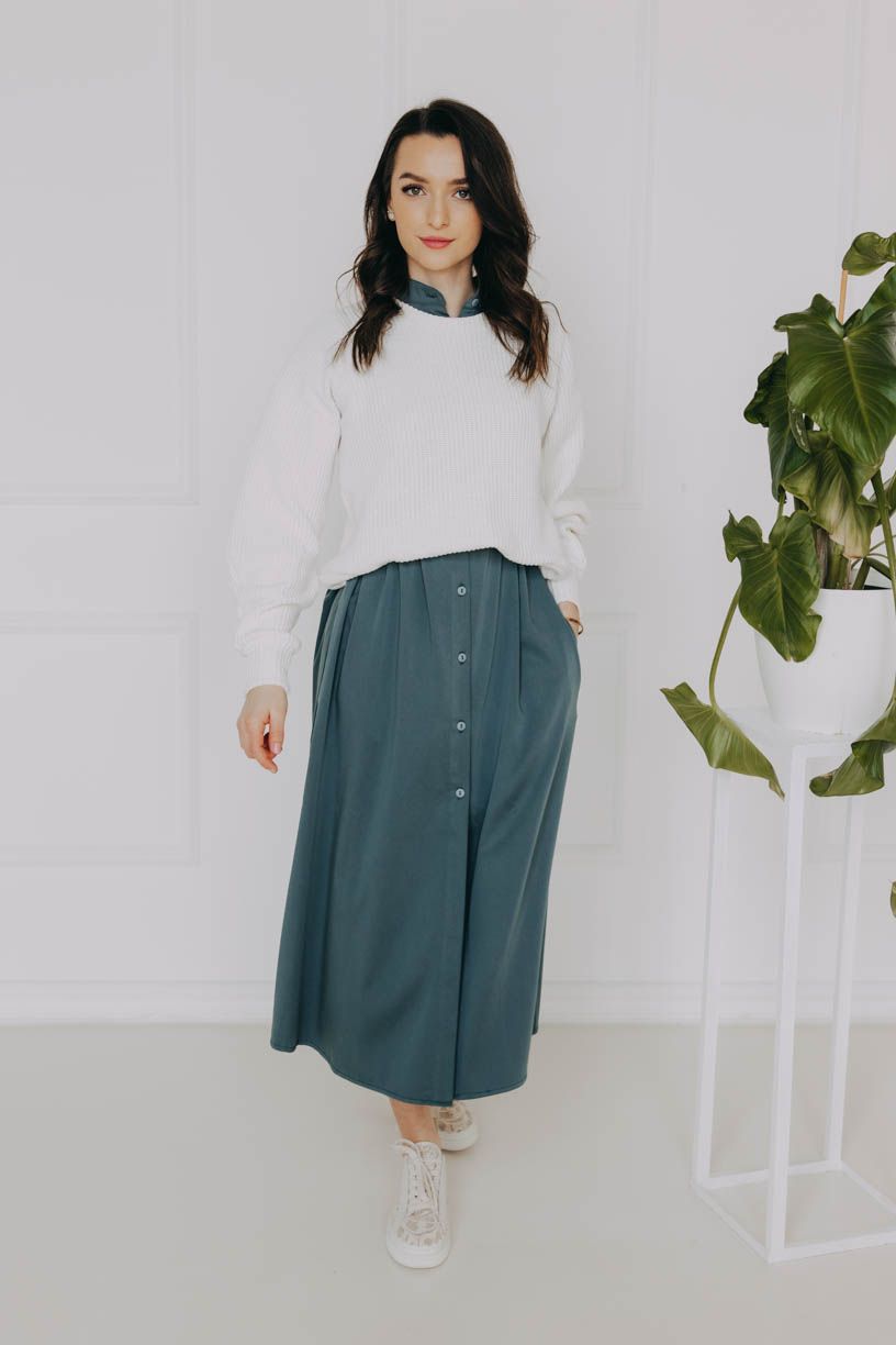 Bez pleteného svetru v chladných dnech ani na ránu. Svetr Dunia je nadčasová klasika, která se v šatníku neztratí. Na první oblečení navodí pověstný hygge pocit svým jemně oversized střihem se širšími náplety na bocích i rukávech.