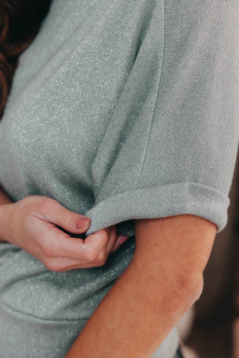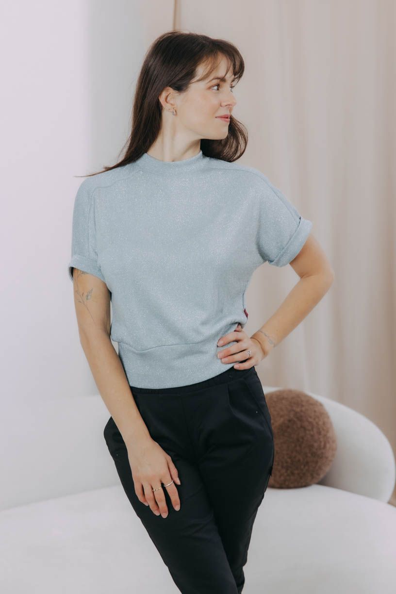 Ušitý je z příjemné viskózy protkané metalickými vlákny, takže se krásně třpytí a skvěle osvěží váš look, aniž by působil lacině. Zcela naopak. V kombinaci s tmavšími tóny působí dokonale harmonicky a v tváři vám vykouzlí přirozený mladistvý vzhled.