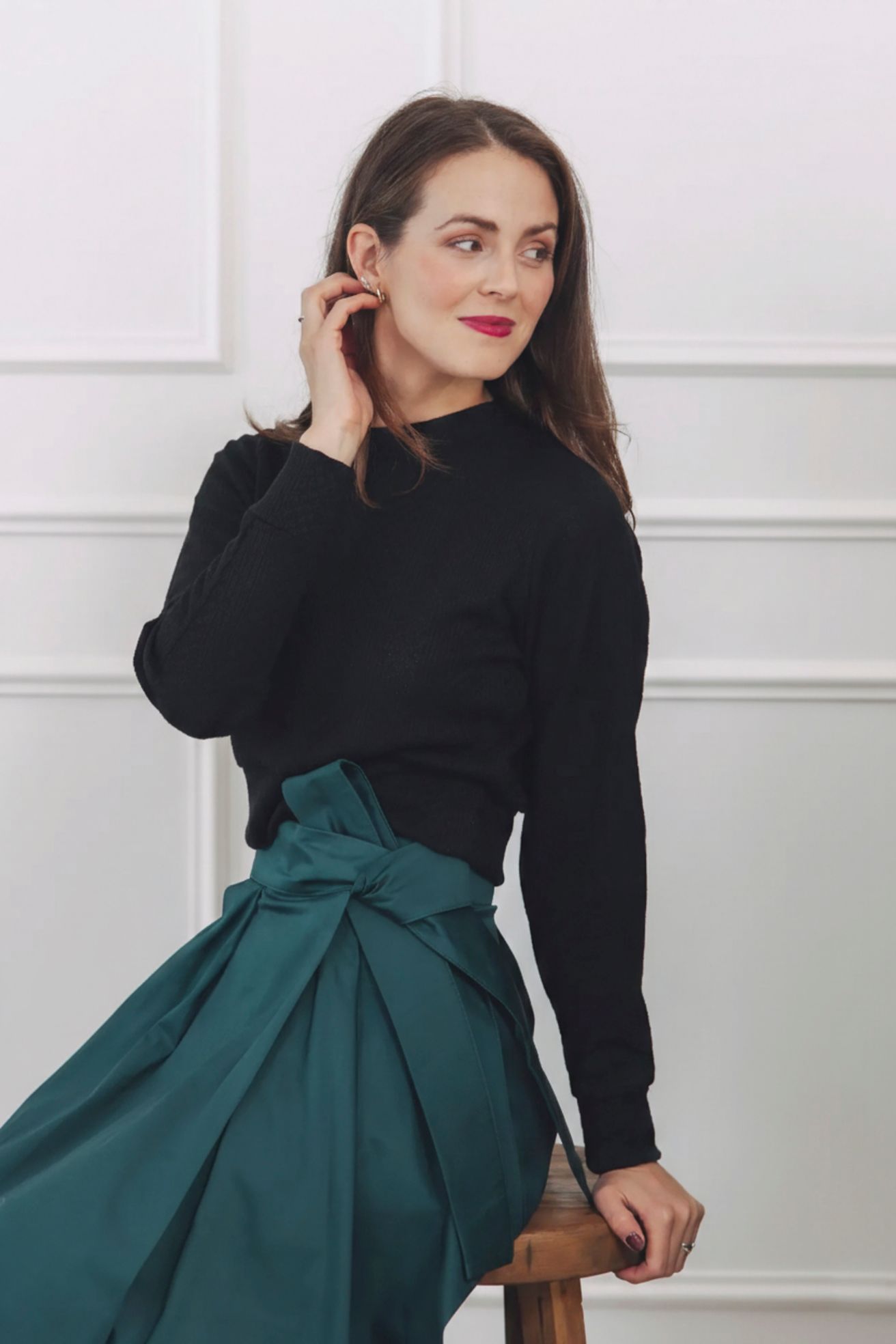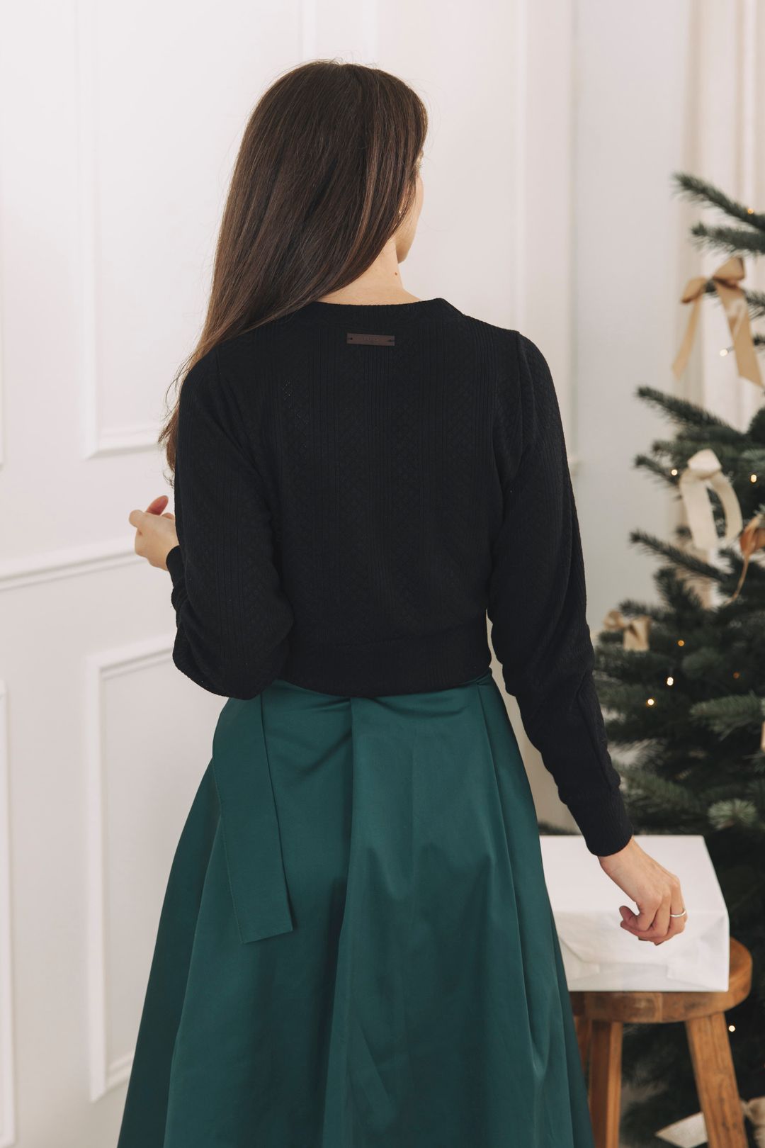 - Svetřík a ikonická sukně Mawe? Trefa do černého. Tayo má ideální délku, aby nechal vyniknout její mašli v pase. Zároveň je sám o sobě tak krásný, že se v jejím světle nestane pouhým stínem.