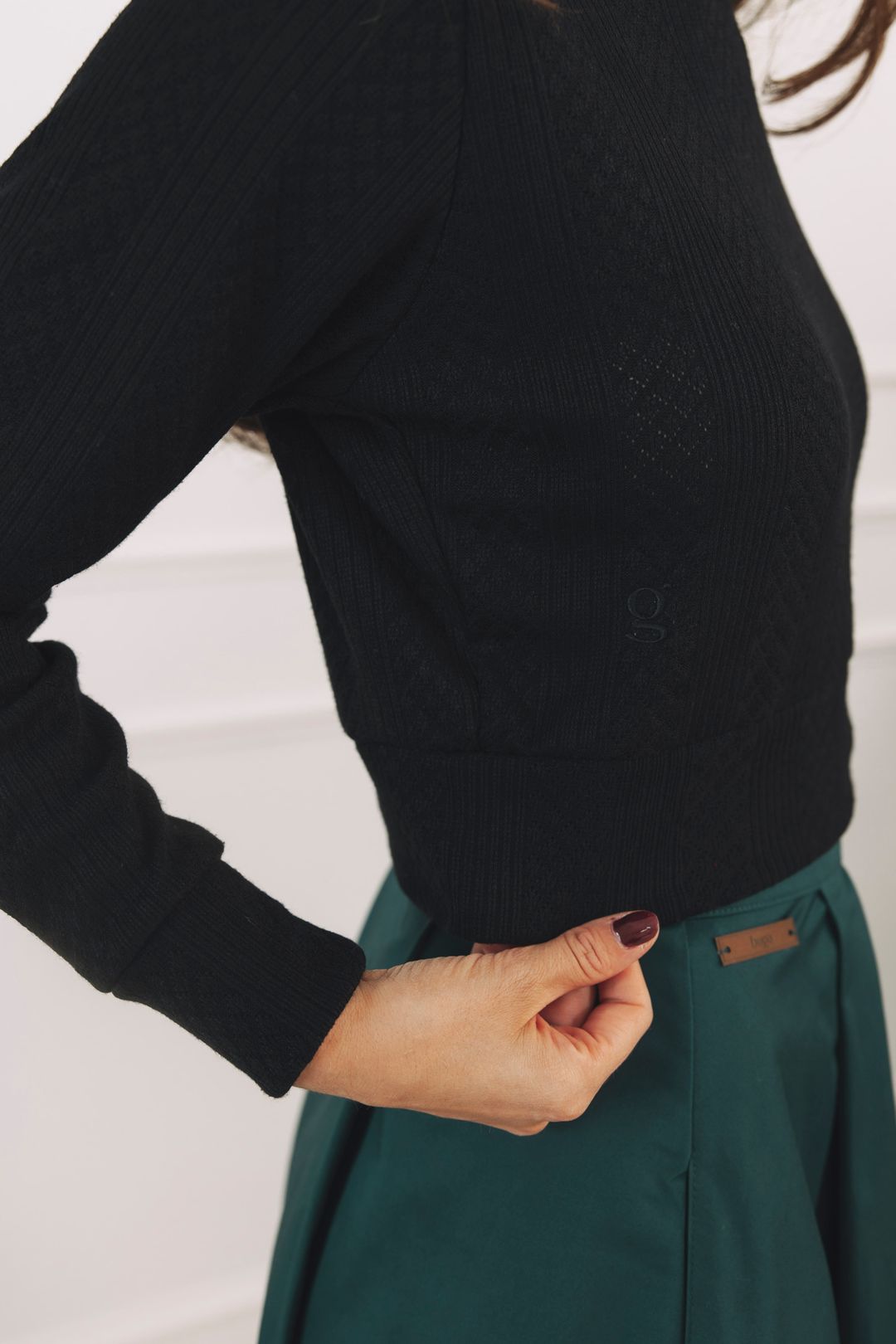 - Střih: Pro svetřík je charakteristická crop délka, kulatý výstřih a širší lem v pase. Právě ten zajistí, aby svetřík perfektně držel tvar a skvěle se hodil k vysokému pasu kalhot či sukní.