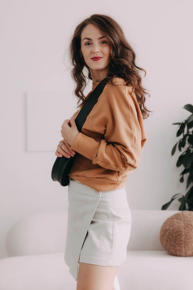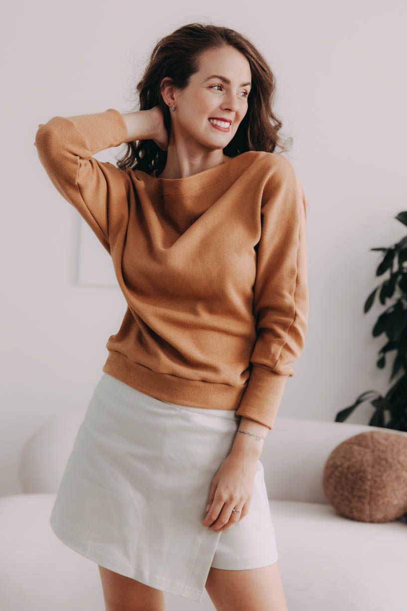 Jeho sofistikovaný lodičkový výstřih je skvělou volbou pro ty z vás, které mají rády decentní eleganci s jemným dotekem ženskosti. Působí uvolněně, ale zároveň noblesně – ideální na pracovní schůzky i víkendové kávičky ve městě. Díky pružným nápletům na rukávech a v pase vás obepne jako jemné objetí, čímž vytvoří postavě lichotivý efekt.
