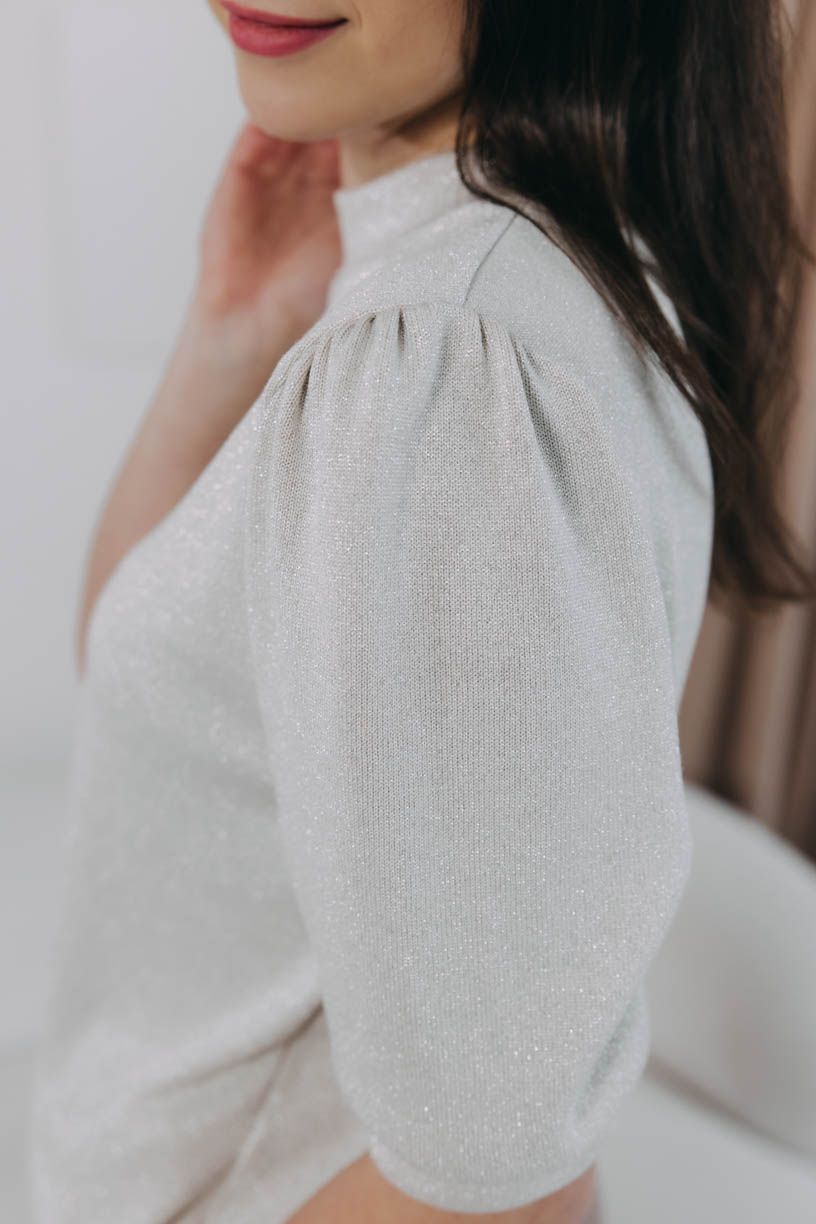 Svetr Winta s balonovými rukávky a v krásné strukturované látce je bezva volbou na firemní večírek i ke štědrovečerní tabuli.