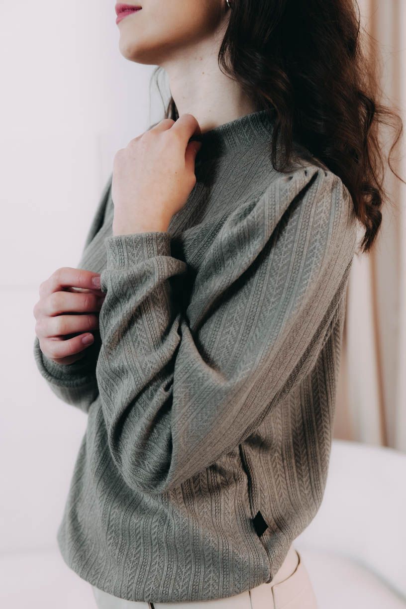 Svetr Winta s dlouhými balonovými rukávy je ušitý ze strukturované látky a krásně v něm vyniknete při každé slavnostní příležitosti.