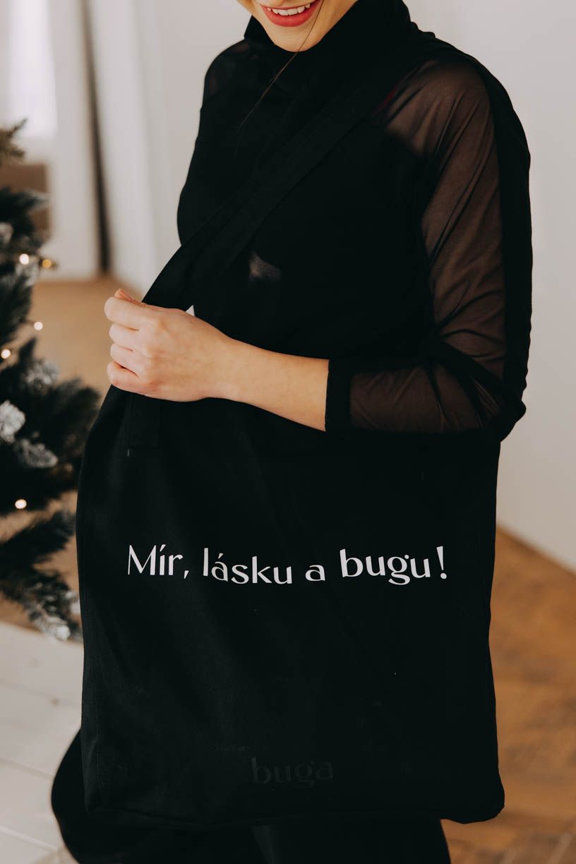 Fešnou tašku se hodí mít po ruce vždycky. Černá látkovka z odolného plátna unese trénink i menší nákup. Navíc to řekne za vás typickými Buga hláškami.