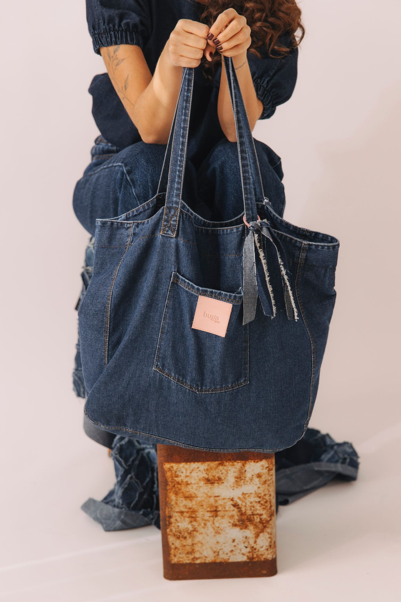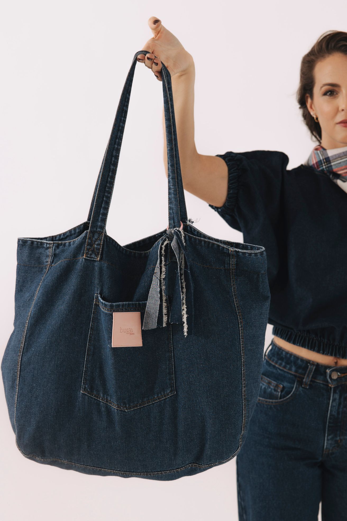 - Styl: Moderní, prostorná dámská džínová taška s minimalistickým designem.