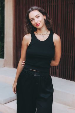 Cropnuté tílko Muru z bavlny s poctivou gramáží. Letní basic kousek unosíte ke kraťasům i sukním – do města, na svižné procházky i na domácí lenošení.